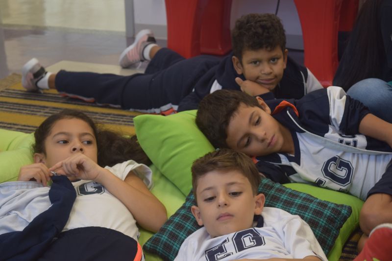 Após lerem um livro da Pippi, os alunos do 3º ano A, orientados pela Profª Aparecida Carrasco, voltaram à sala de leitura para escutarem novas histórias da menina de cabelo laranja.