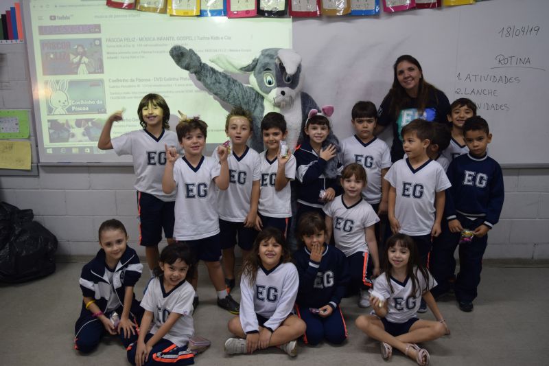 Nossos pequenos ainda contaram com a visita especial do coelhinho da Páscoa, que fez questão de entregar, pessoalmente, os chocolates.