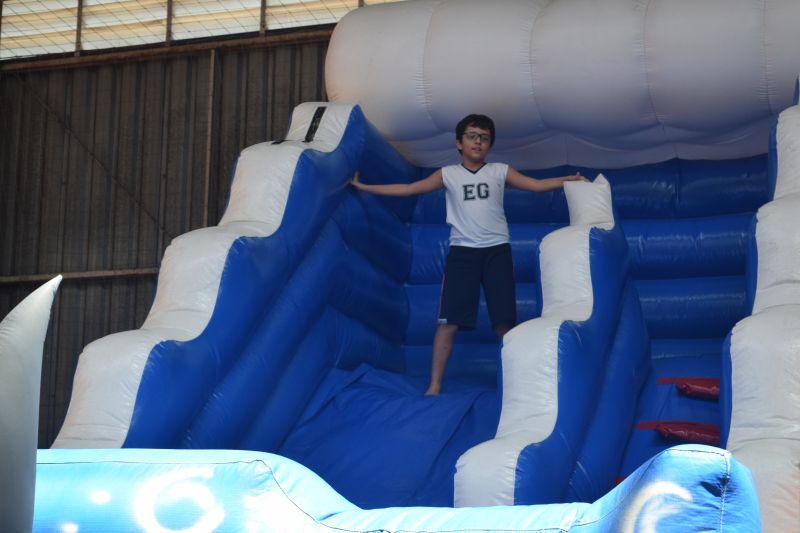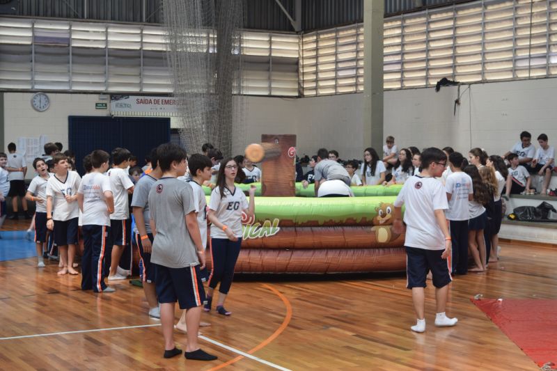 A Quadra Poliesportiva do Colégio foi tomada pelas crianças, que se divertiram em diversos brinquedos, com grande alegria estampada no rosto.
