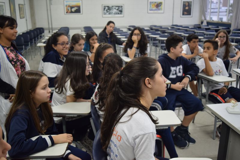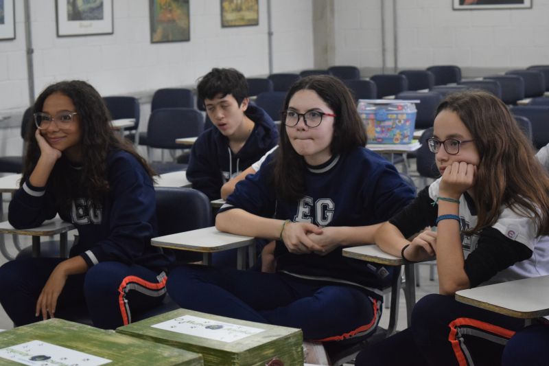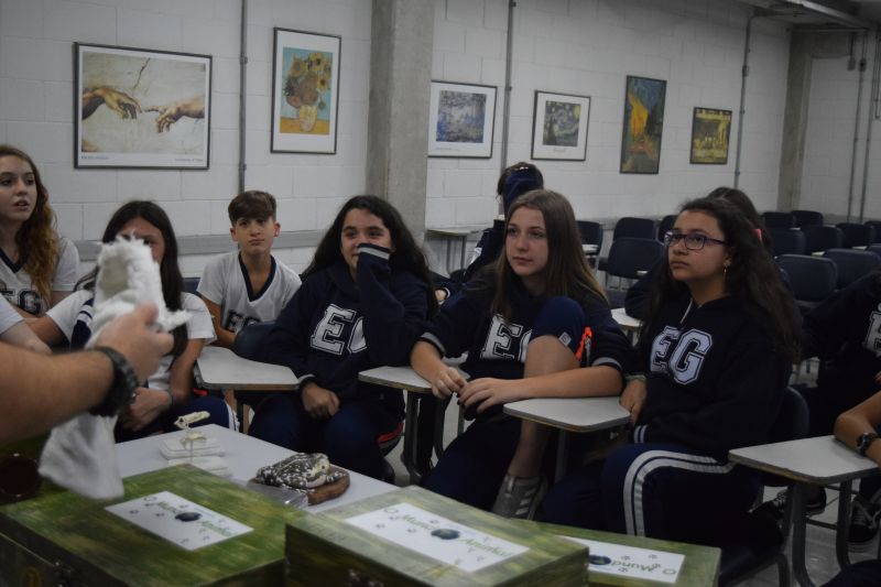 Visando promover a compreensão dos alunos acerca das características essenciais de cada ser vivo do Reino Animal, como representante, modo de obtenção de alimento, modo de vida, habitat, novidade evolutiva e ciclo de vida, a Profª. Bárbara Chagas, de Ciências, levou os alunos do 7º ano do Ensino Fundamental à sala de multimídia para conhecerem alguns seres vivos.