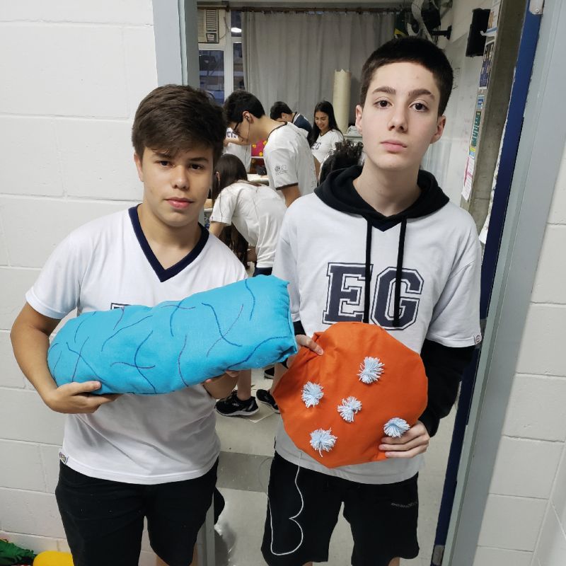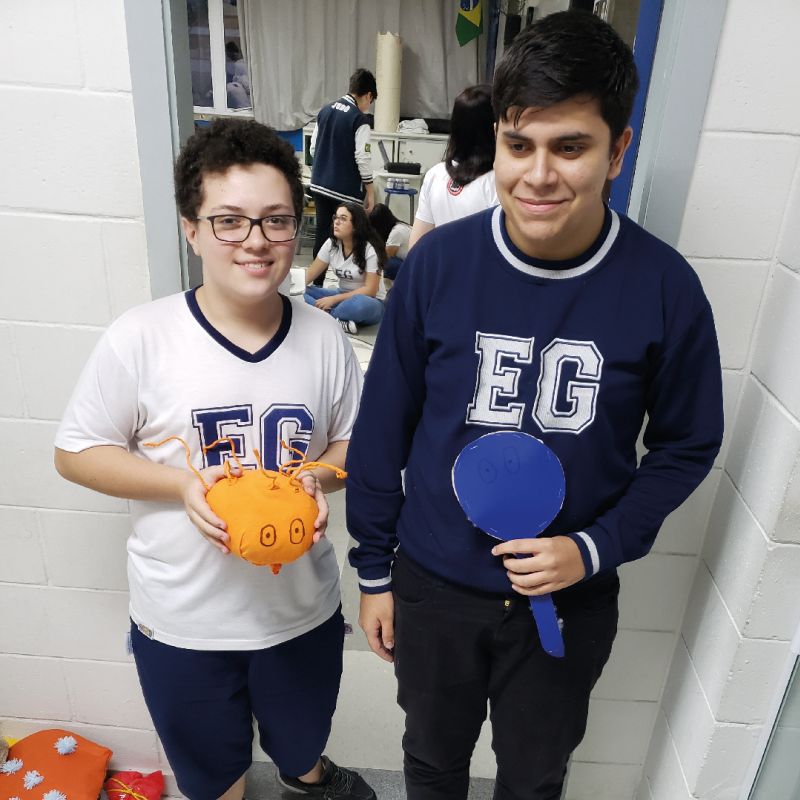 No mês de novembro, os alunos da 1ª série D do Ensino Médio, orientados pelo Prof. Felipe Rodrigues, de Biologia, produziram seres de pelúcias, representando microrganismos.