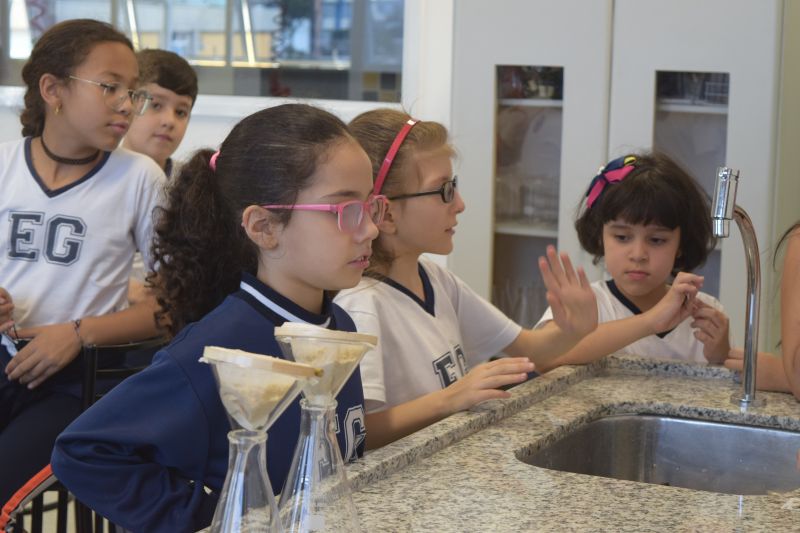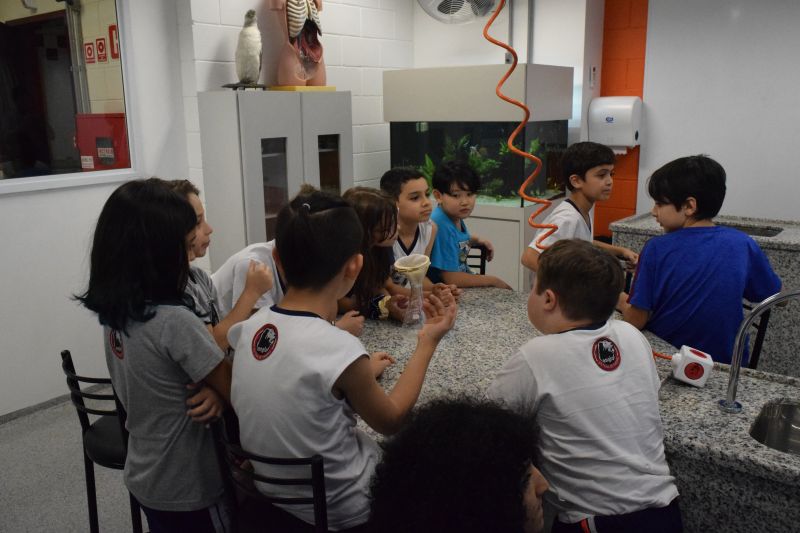 Com o objetivo de aprimorar o conhecimento acerca das aves e do processo de filtragem, os alunos do 3ºano do EF foram ao laboratório realizar experimentos.