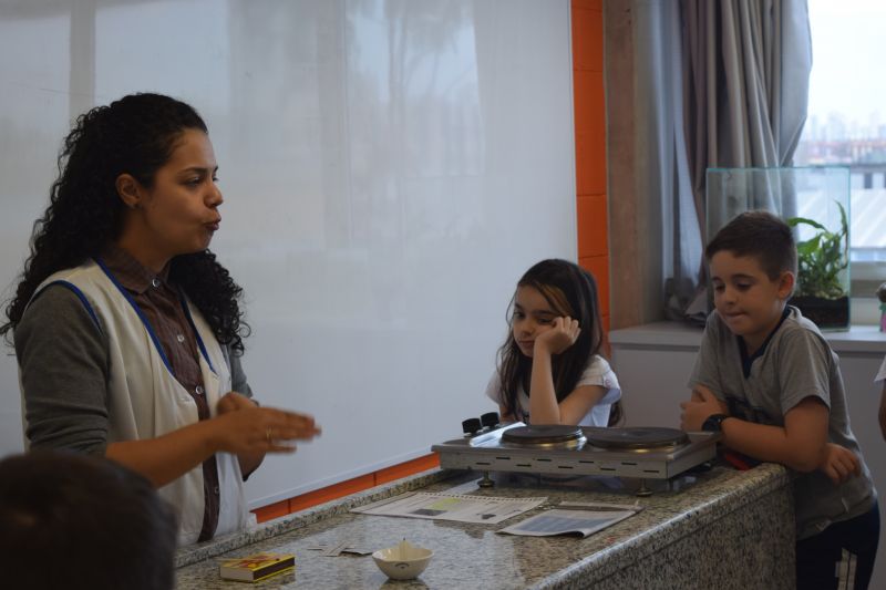 Para demonstrar como as massas de ar quente sustentam uma ave em pleno voo, a Nutricionista Thaísa Pereira recortou uma tira de jornal e a posicionou a certa distância, sobre a chama de uma vela, sendo possível observar a ponta da tira subindo.