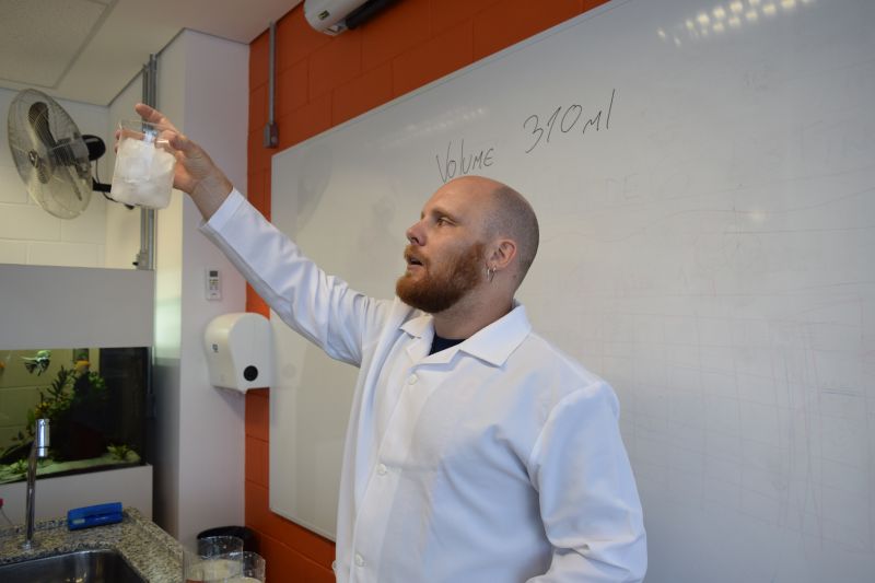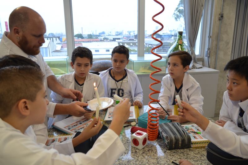 Com o objetivo de ensinar os estudantes do 6º ano do Ensino Fundamental a fazerem registro de processos investigativos, através de relatório de atividade prática, o Prof. Carlos Sebode, de Ciências, levou-os ao Laboratório e realizou três experimentos.