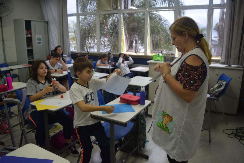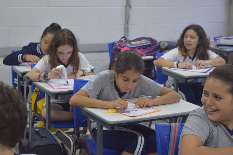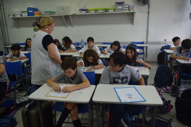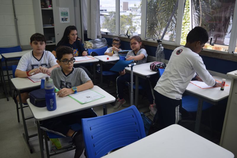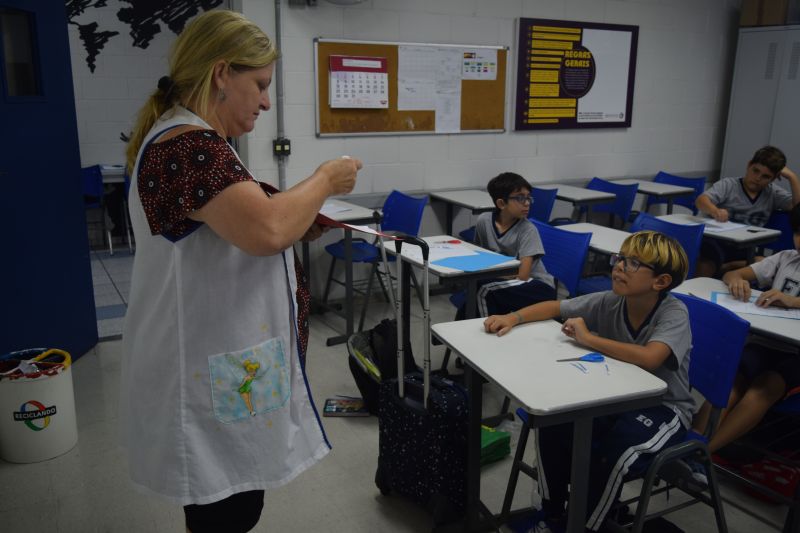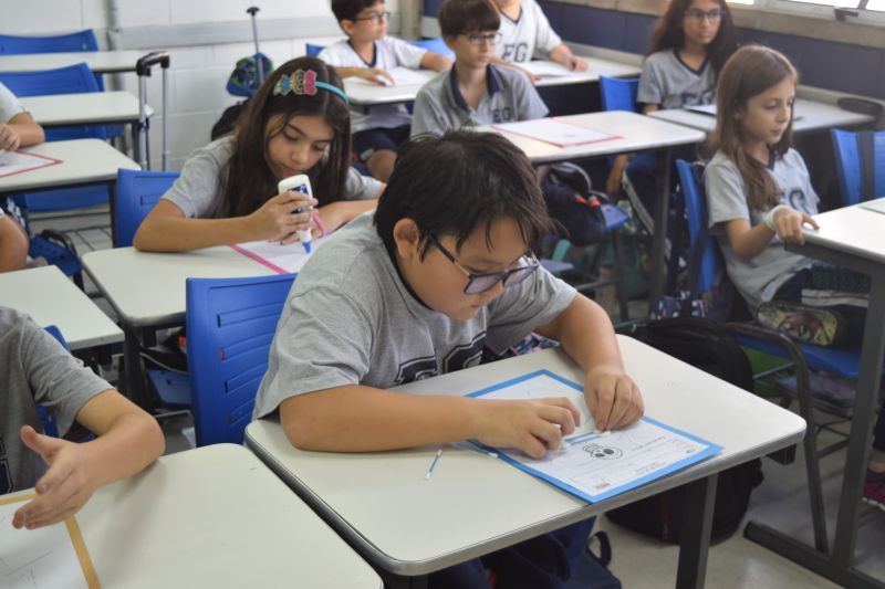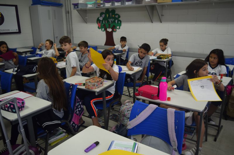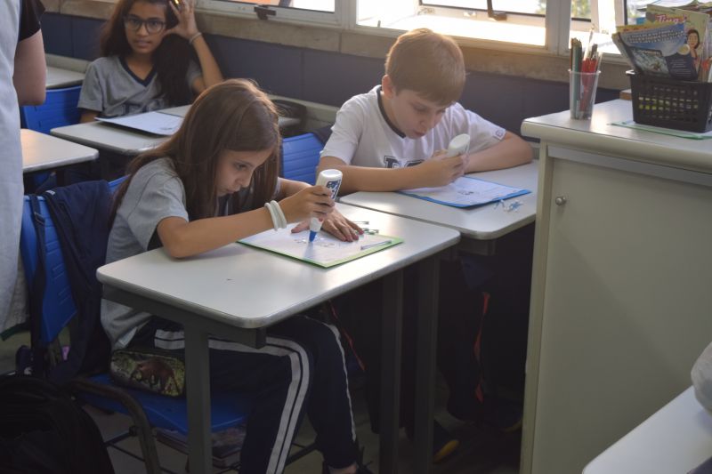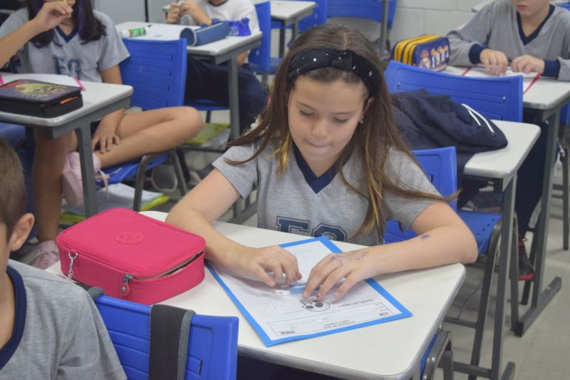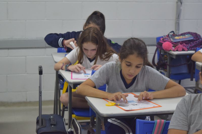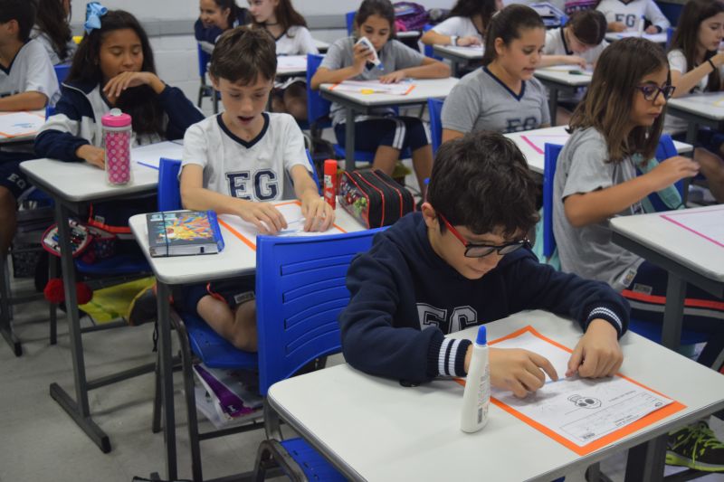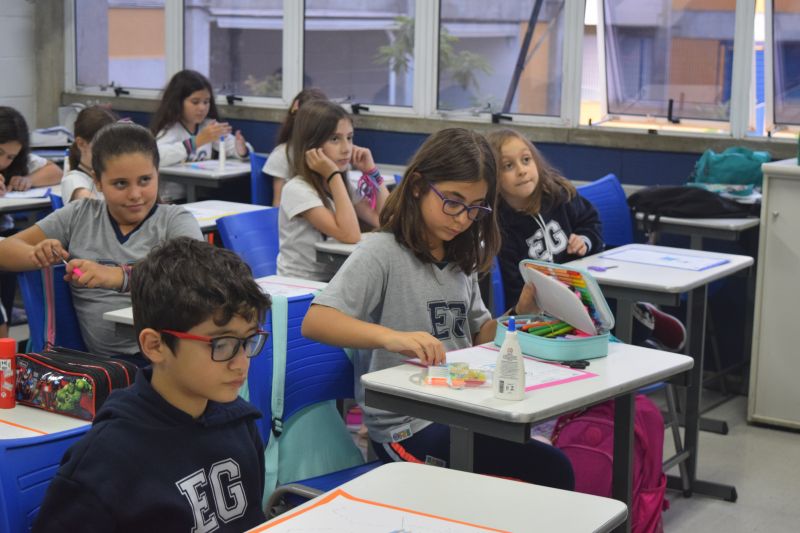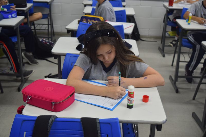 No mês de março, estudantes do 5º ano do Ensino Fundamental, orientados pela Prof.ª Vitoria Perricci, de Arte, confeccionaram esqueletos humanos com cotonetes.