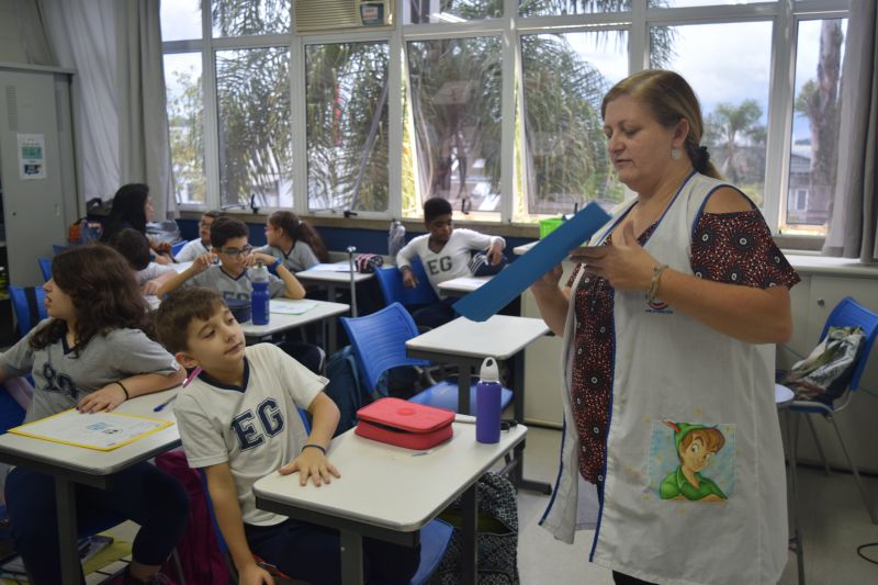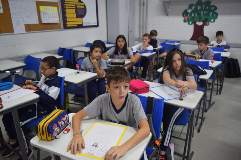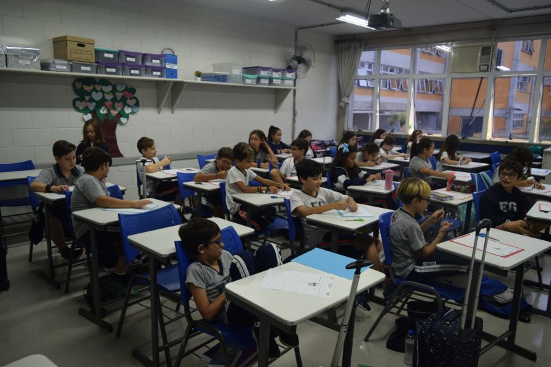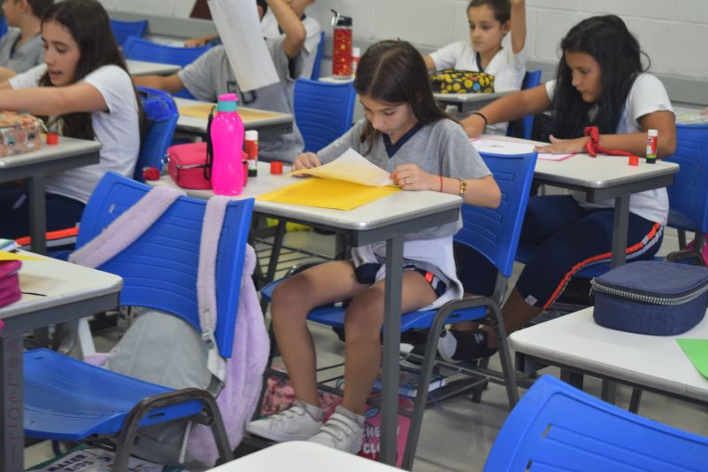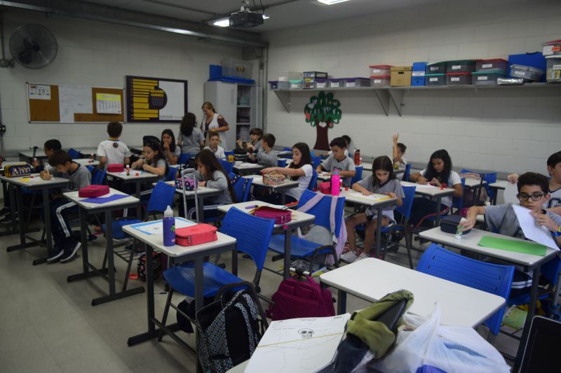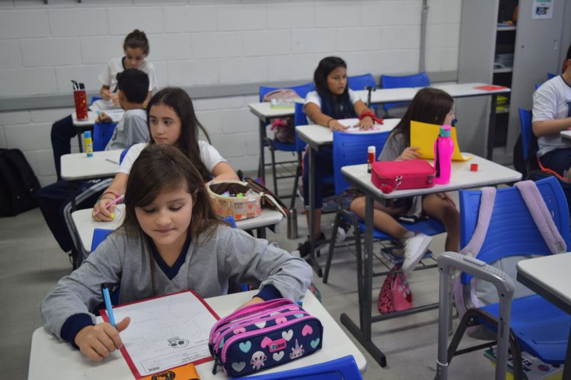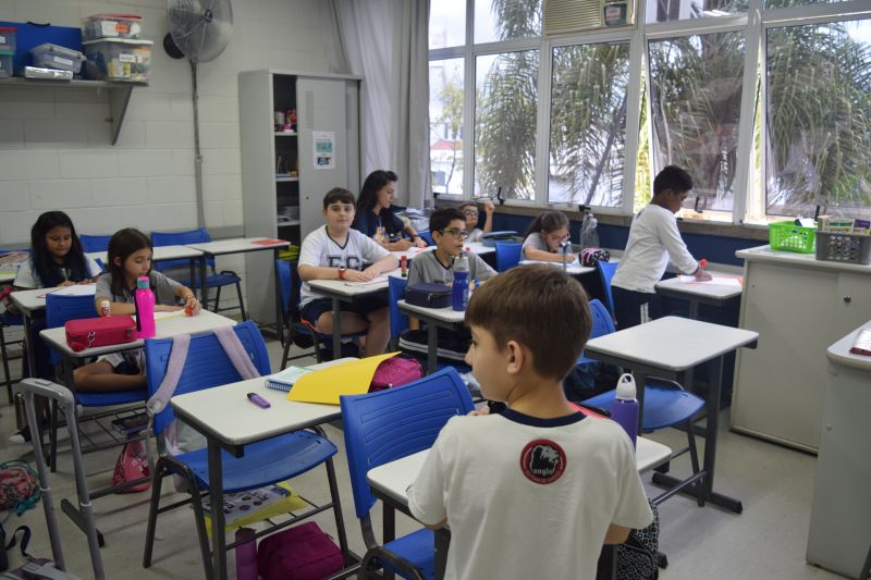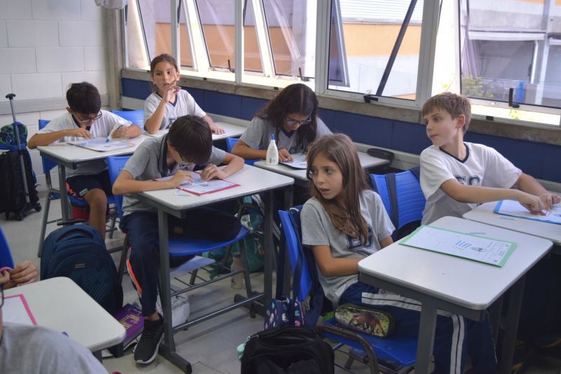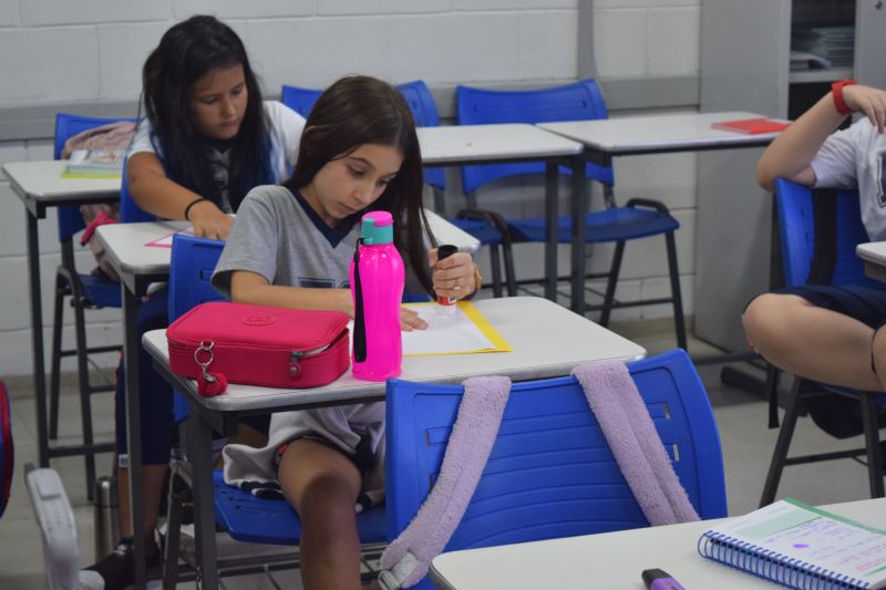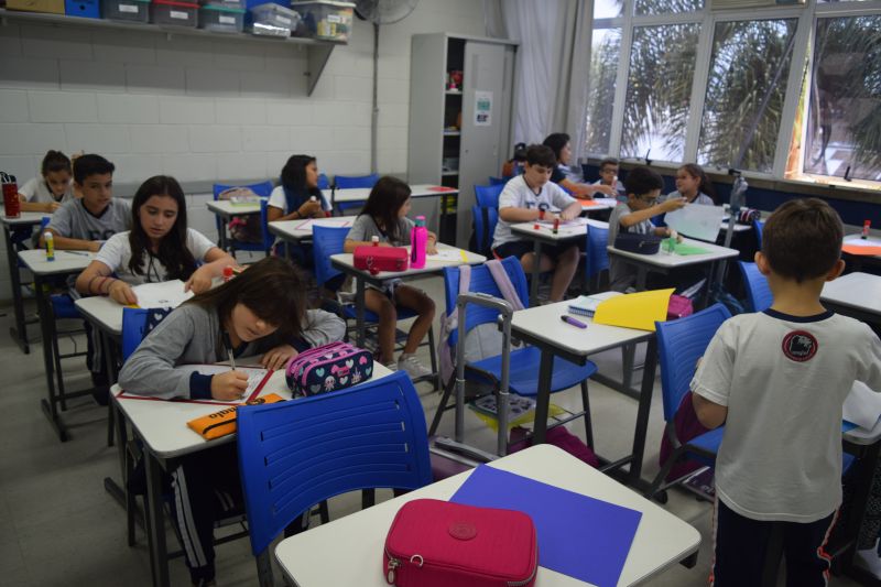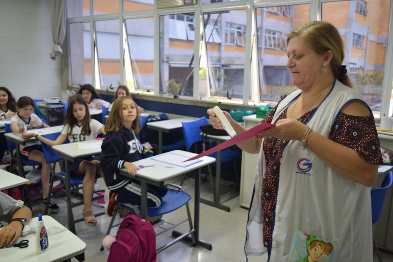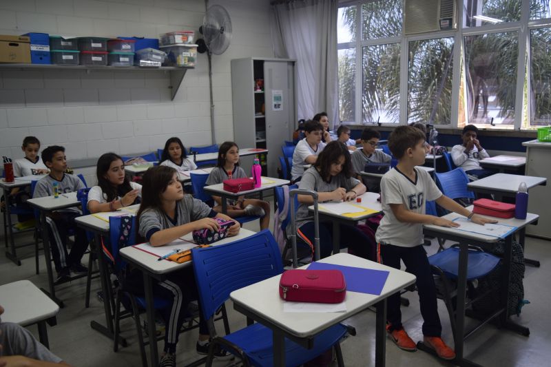 No mês de março, estudantes do 5º ano do Ensino Fundamental, orientados pela Prof.ª Vitoria Perricci, de Arte, confeccionaram esqueletos humanos com cotonetes.