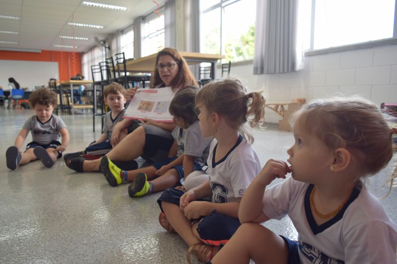 Com o objetivo de mostrar aos estudantes do Maternal as características de alguns animais, por meio de vídeos, imagens e livros de histórias, a Prof.ª Luciana Bende levou-os ao Espaço Maker.
