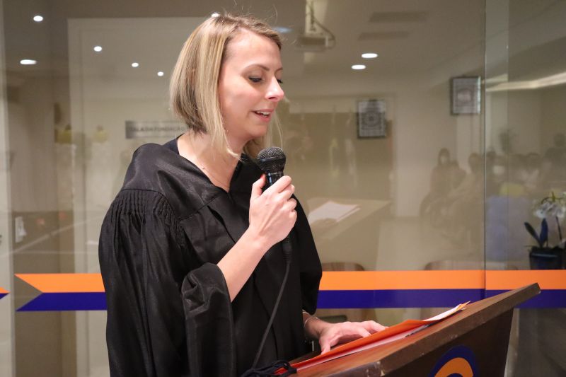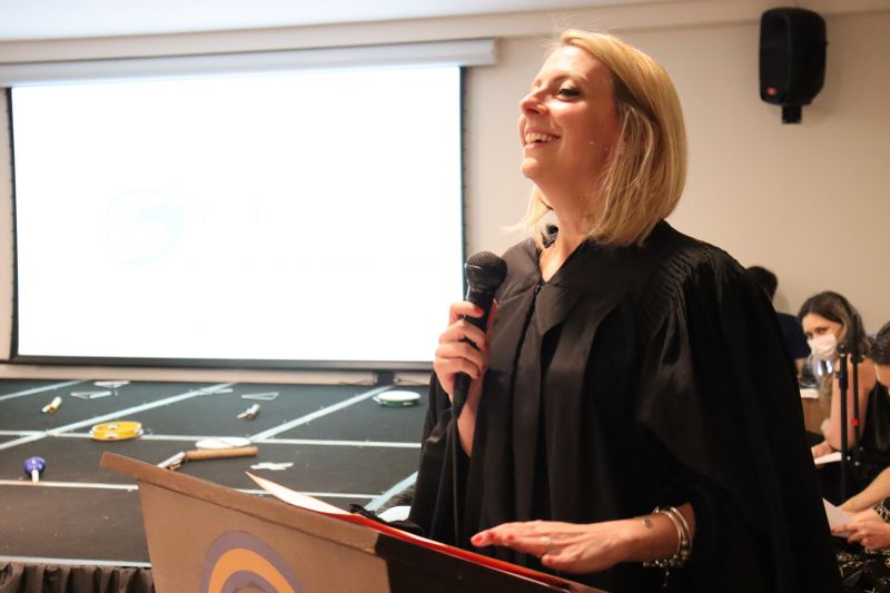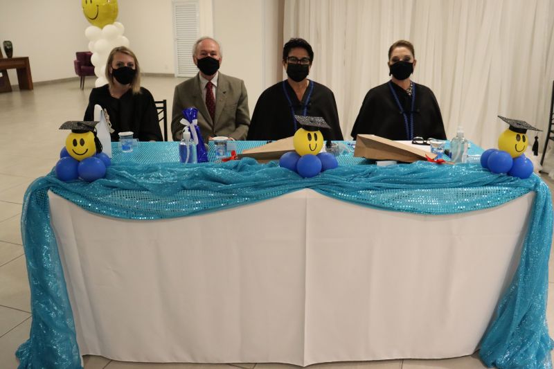 A mesa solene foi composta pelo Presidente da Fundação de Rotarianos de São Caetano do Sul, Sr. Célio Brait Rodrigues, pela Diretora-Geral do Colégio Eduardo Gomes, Prof.ª Janice Aparecida Guizelini, pela Diretora Pedagógica, Prof.ª Filomena Maria Fieri, e pelas Professoras Rosimeire Freitas e Marcela Sanches, de acordo com a turma.
