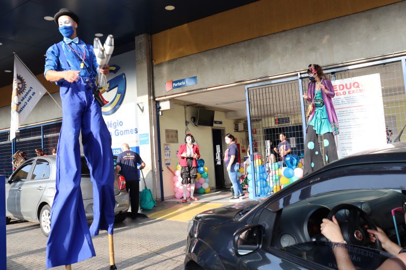 Logo na entrada, as crianças e adolescentes foram recepcionadas pela Palhaça Puntiléia, dois pernas-de-pau e uma banda de soldadinhos de chumbo.