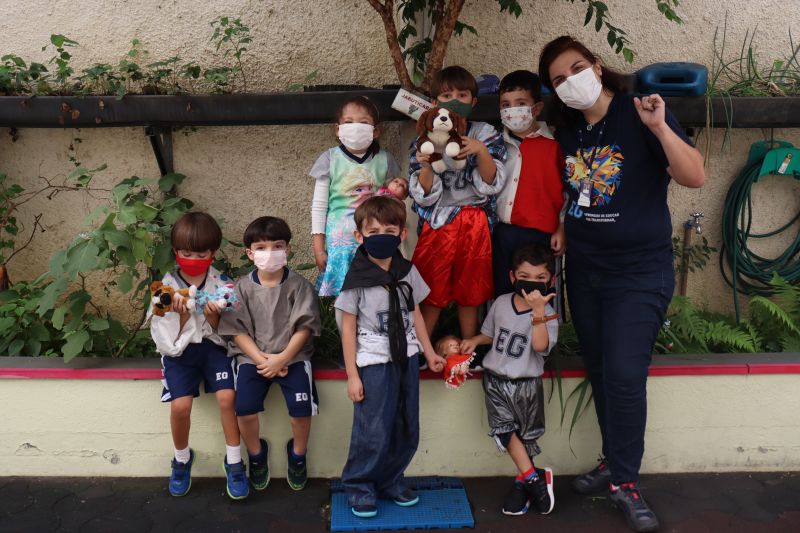 Os alunos se caracterizaram de mamãe, papai, filho(a), avô, avó, irmão, irmã e “construíram” uma família. Após a caracterização, foi tirada a tradicional foto de família, e os alunos puderam se divertir, no parque, com as vestimentas.