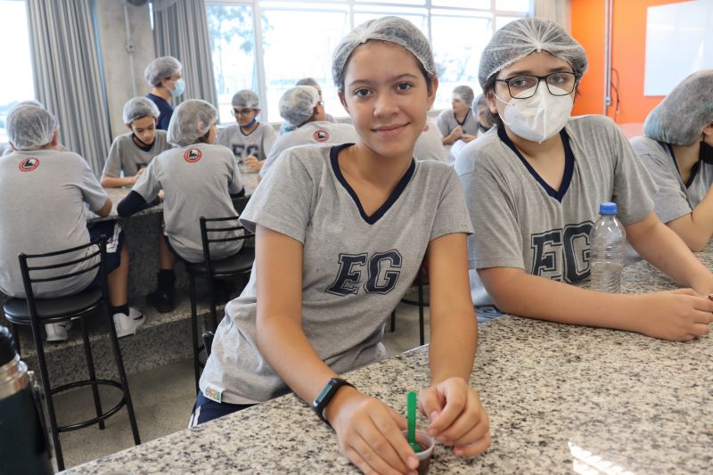 Orientados por Thaísa, responsável pela Cozinha Experimental e pelos Laboratórios, e pela Prof.ª Raquel Hipólito, de Geografia, os alunos aprenderam a receita do brigadeiro e entenderam que esse doce está ligado à II Guerra Mundial, devido ao uso do leite condensado, e que, em 1945, a carioca Heloísa Nabuco de Oliveira o criou, em apoio à campanha presidencial do Brigadeiro Eduardo Gomes, candidato à Presidência da República.