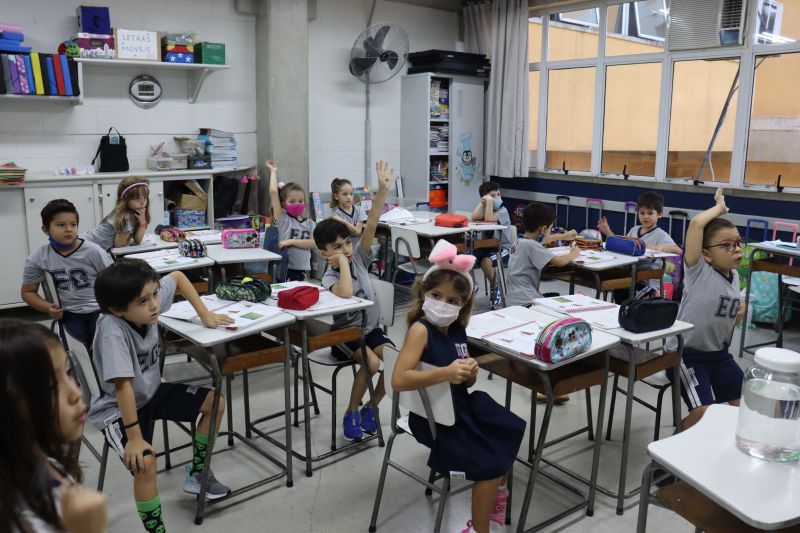 Sob a orientação das Prof.as Rosimeire e Marcela, os alunos fizeram uma experiência com um brinquedo de dinossauro, colocando-o na água e observando sua transformação.