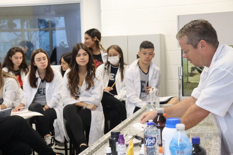 Nos dias 3 e 4 de maio, os estudantes de 1ª e 2ª séries (tarde) e 3ª série (manhã e tarde) do Ensino Médio, sob orientação do Prof. Alex, foram ao Laboratório para observar experimentos relacionados aos conteúdos estudados em sala de aula, realizados pelo professor.