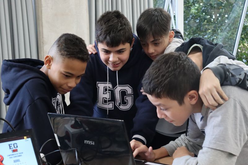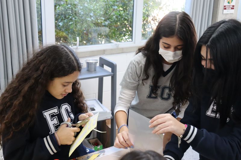 Para a criação do jogo, os estudantes desenvolveram o projeto do dominó em sala de aula, com o auxílio de computadores, e depois foram ao Espaço Maker para imprimi-lo e recortá-lo. Depois de pronto, usaram a máquina plastificadora para revestir as peças do jogo.