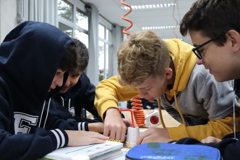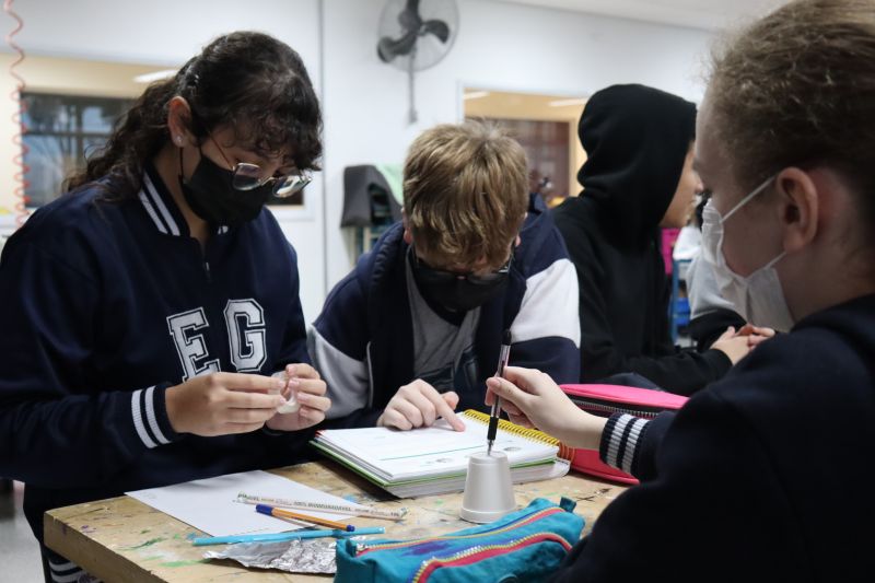 Em sala de aula, os alunos do 8º ano aprenderam a respeito da eletrização, que significa a transferência de cargas elétricas entre corpos. Para que pudessem aprofundar seus conhecimentos sobre o assunto, foram ao Espaço Maker e, sob orientação da Prof.ª Carolina Martins e com o auxílio do Lucas e do Nikolas, responsáveis pelo espaço, construíram um pêndulo eletrostático.