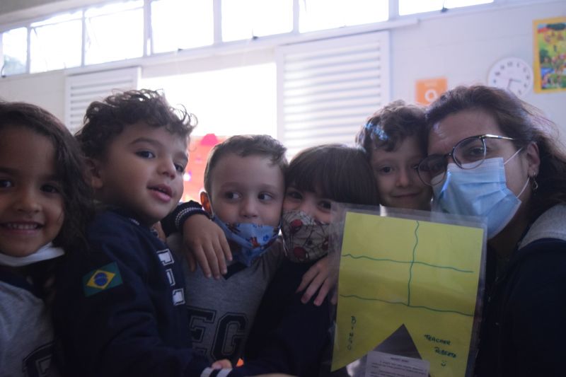 Para a finalização do projeto, os alunos vivenciaram um momento interativo, trabalhando as habilidades de escuta (listening) e fala (speaking), com o Bingo Time, participando de jogos típicos de festa junina, como bingo, pesca e boca do palhaço.