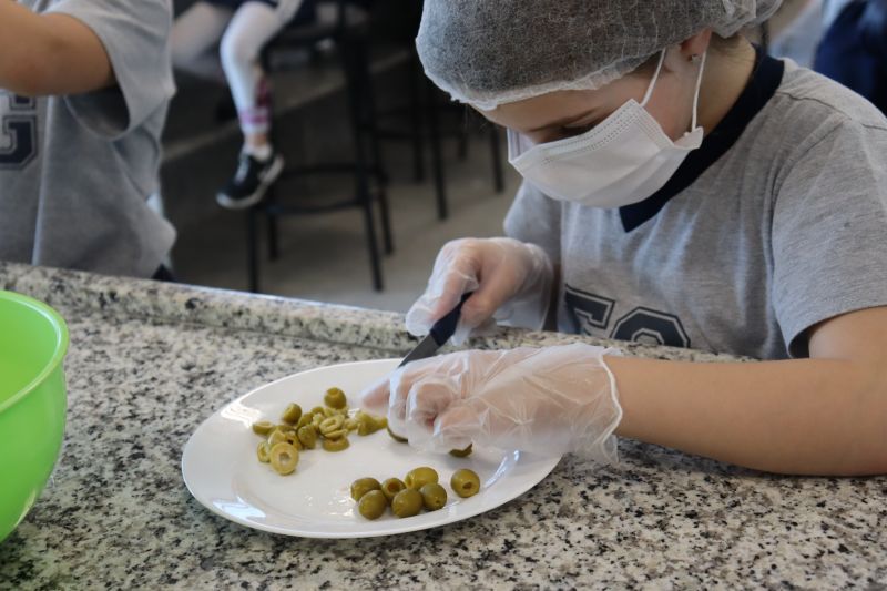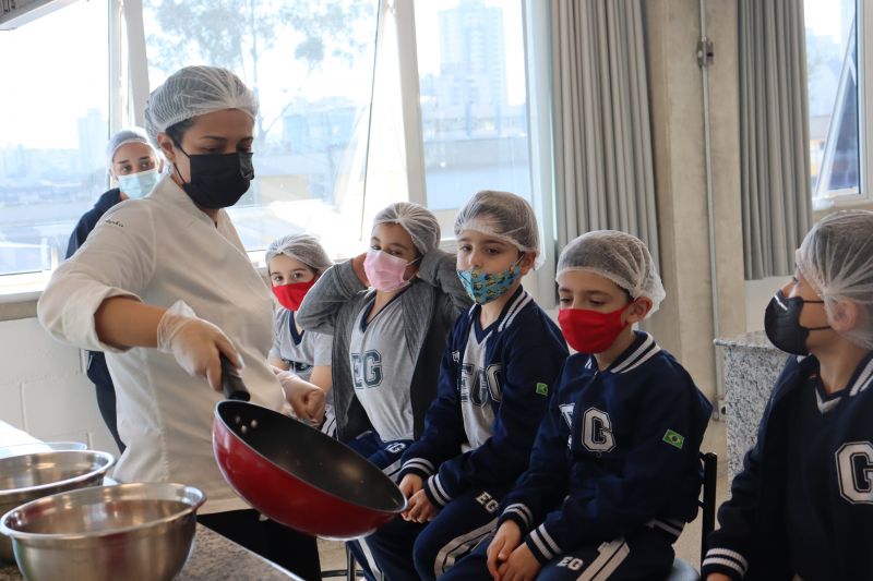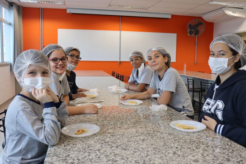 Na Cozinha Experimental, sob orientação da Thaisa de Jesus Pereira (responsável pelo espaço), os estudantes aprenderam a fazer crepioca. Auxiliaram a Thaisa no preparo da receita e, por fim, saborearam essa novidade.