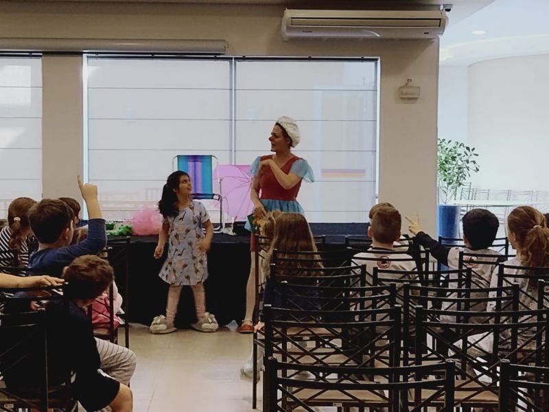 No Salão Nobre do Colégio, aconteceram diversos eventos: a apresentação do mágico Pedro Chavernuê, com novos truques que encantaram as crianças, o show da Palhaça Puntiléia, com uma performance muito engraçada, e a visita do Biólogo André Costa, que trouxe diversos animais para os alunos conhecerem e interagirem com eles.