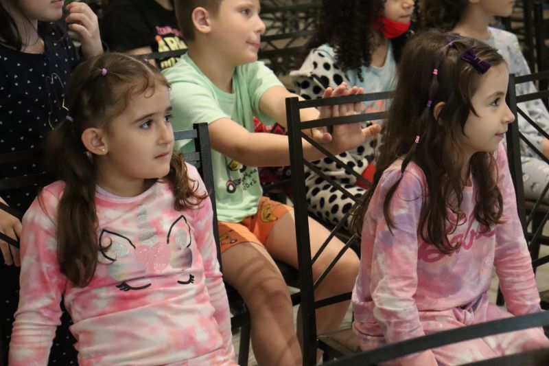 Nas salas do integral, foi organizado um dia do pijama. Os alunos vieram vestidos a caráter e participaram de uma sessão de “cineminha”, com pipoca salgada e doce e sucos e refrigerantes.