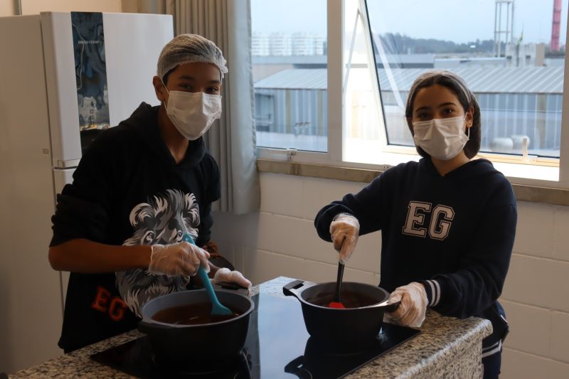 Para associar a história do surgimento do brigadeiro à campanha eleitoral do Brigadeiro Eduardo Gomes, como candidato à Presidência da República, os alunos foram à Cozinha Experimental, prepararam uma receita desse doce tipicamente brasileiro e o degustaram.