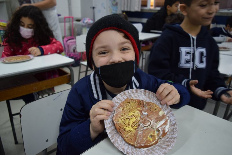 Estudando o período Paleolítico, os alunos do 1º ano do Ensino Fundamental, sob orientação da Prof.ª Vitória, foram à Sala de Arte para realizar uma atividade de identificação, reconhecimento e produção de arte rupestre.