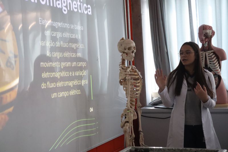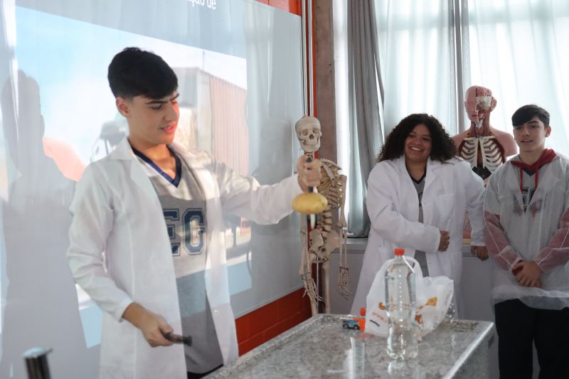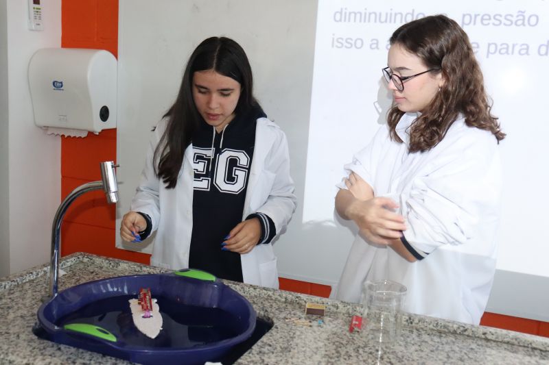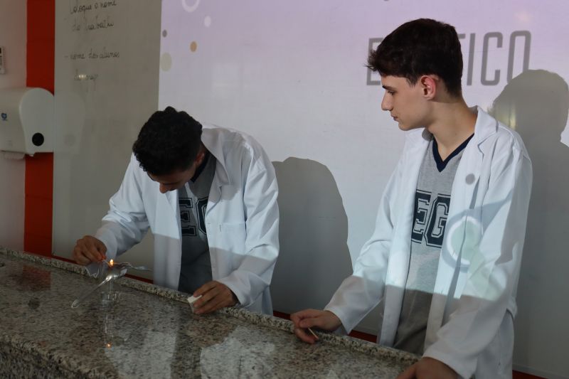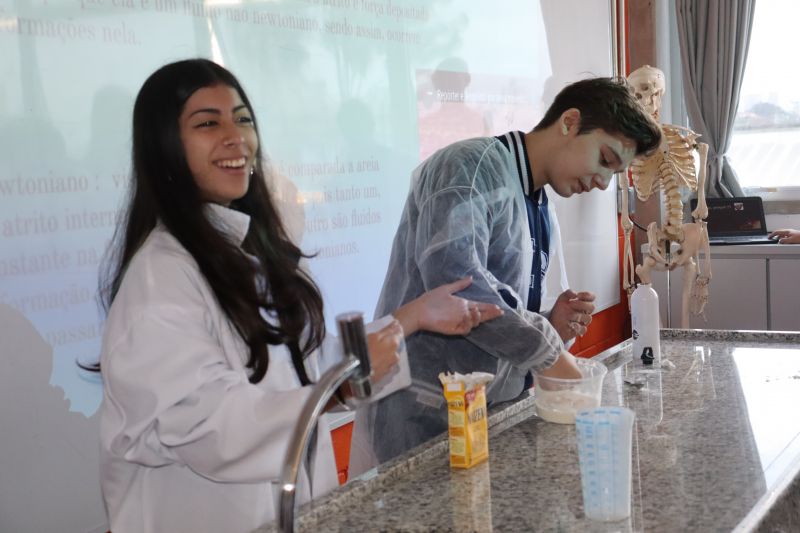 Cada grupo recebeu um tema e, após a realização dos experimentos, os estudantes foram ao Laboratório para apresentar à classe seus projetos e a pesquisa que haviam feito.