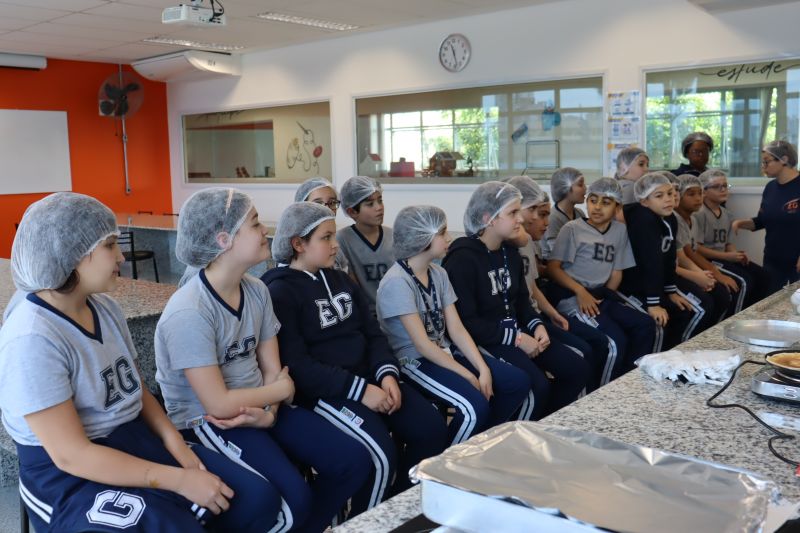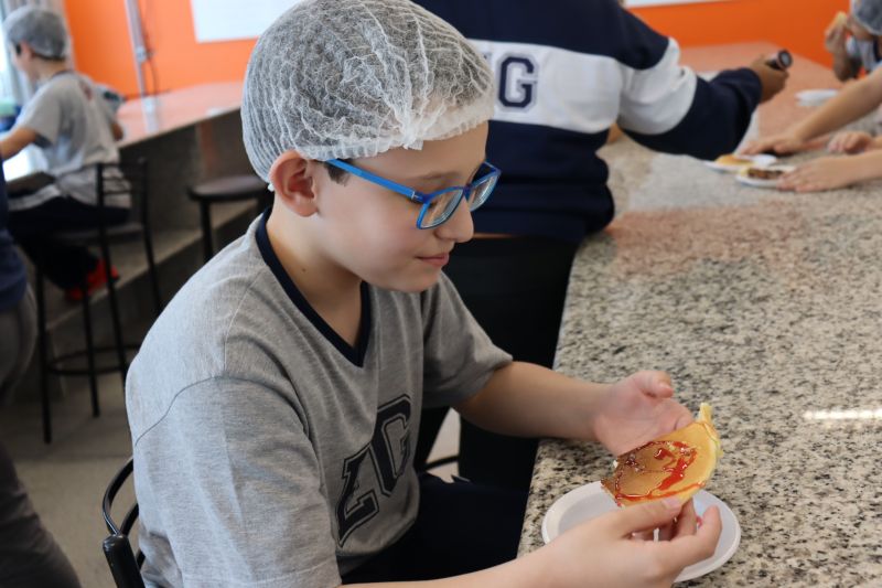 Os alunos do 4º ano do Ensino Fundamental, sob orientação das Professoras de Inglês, Michele Berdnikoff, Amanda Cordisco e Karen de Almeida foram à Cozinha Experimental para o preparo de uma receita típica de american pancakes.
