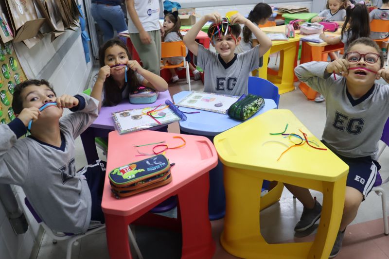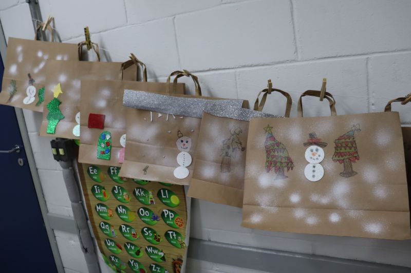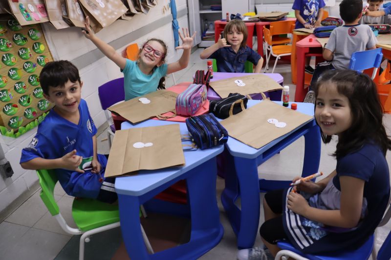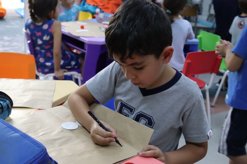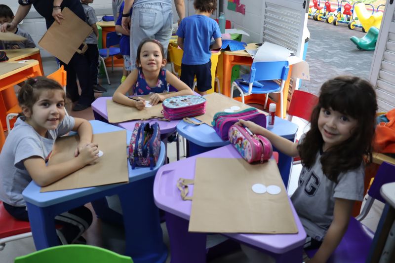 Finalizando o projeto, os alunos decoraram uma sacola de Natal para levar o scrapbook para casa.