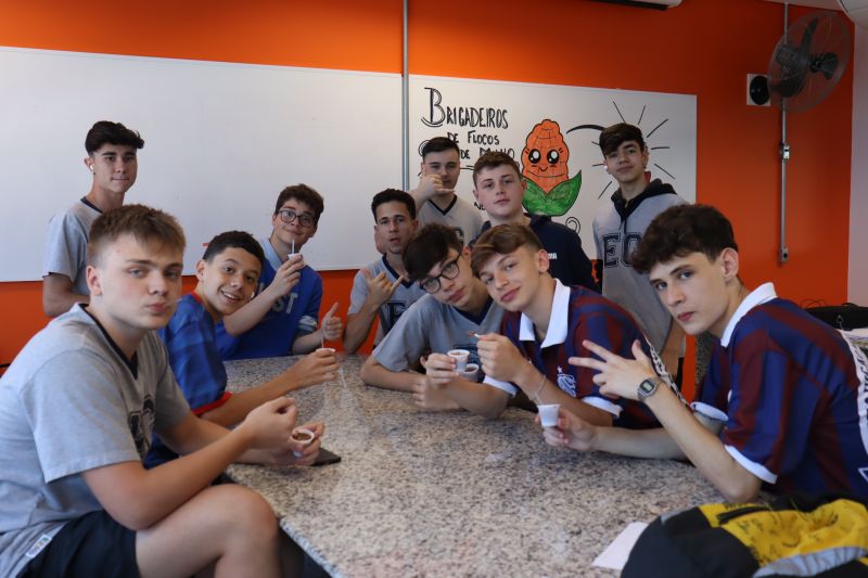 Os alunos da 1ª série (Itinerários - G3, G4 e G5) e da 2ª série do EM foram à Cozinha Experimental com o Prof. Felipe Pius, para fazerem uma atividade prática, orientados também pela Thaísa (responsável pela cozinha e pelo laboratório). Lá participaram do preparo de um brigadeiro de sucrilhos. Em outro dia, prepararam polenta com molho de tomate e calabresa.