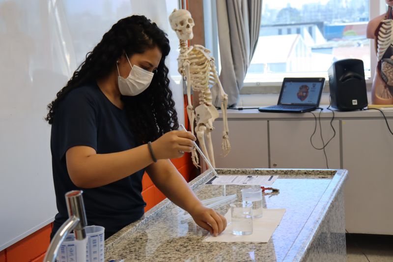 Os alunos do 1º ano do Ensino Fundamental foram ao Laboratório, orientados pela Thaísa (responsável pela cozinha e pelo laboratório) para aprender mais sobre temperatura.