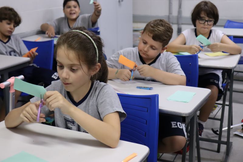 Entre 22 de fevereiro e 1º de março, alunos do 3º ano do Ensino Fundamental, com o auxílio das Prof. as Aparecida Carrasco, Gina Adélia dos Reis, Letícia Juliani Fragoso Ferreira, Paula Rezende e Tatiana Lé Pimentel, construíram foguetes, usando papéis tamanho A4, tesoura, fita adesiva e canudos.