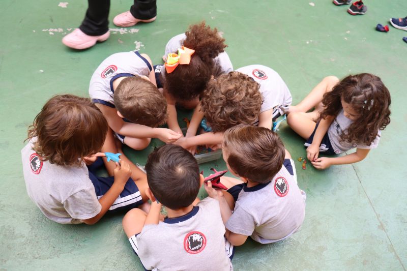 Por meio da brincadeira e da exploração de diferentes materiais, a criança aprende e desenvolve competências emocionais e sociais. Nessa atividade, colocaram em prática o fantástico mundo do “faz de conta”.
