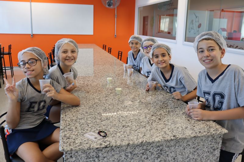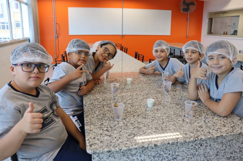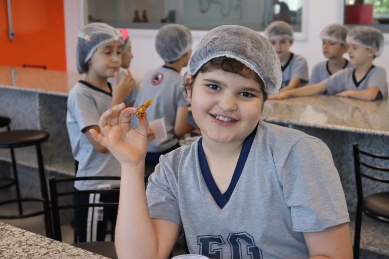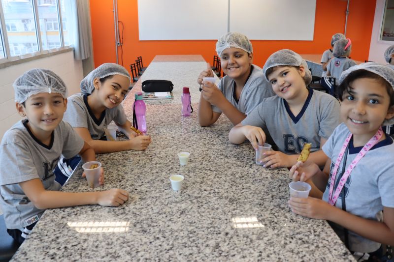 Os estudantes do 3º ao 5º ano, do período integral, foram à Cozinha e, sob orientação do Prof. Carlos (responsável pela Cozinha Experimental e pelo Laboratório), participaram de uma deliciosa aula de elaboração de duas receitas: batata rústica e maionese verde.