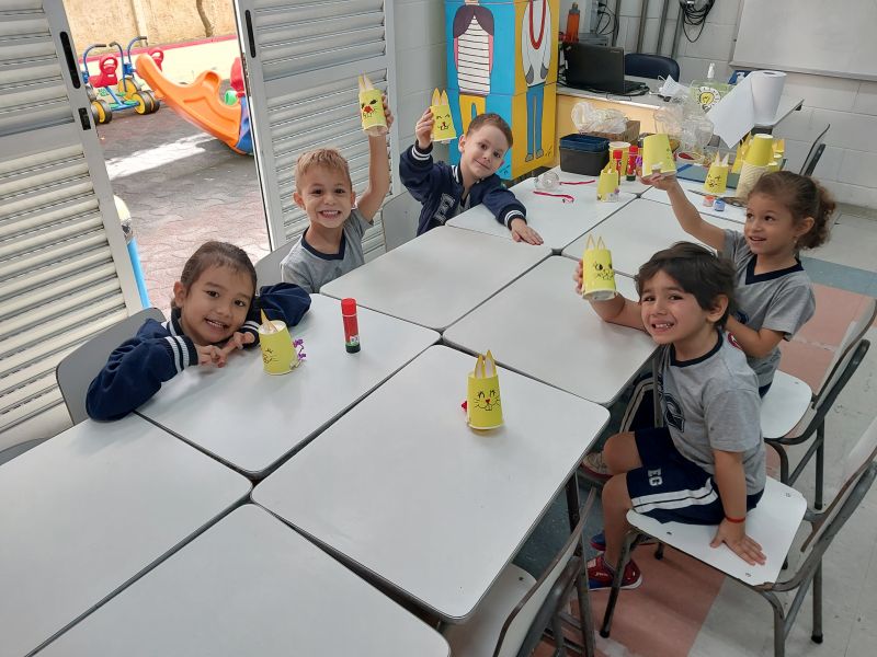 Os alunos decoraram seus “animaizinhos” e aprenderam a utilizar a técnica com elástico para participar da corrida dos coelhos, realizada no pátio, na qual os alunos se divertiram muito.