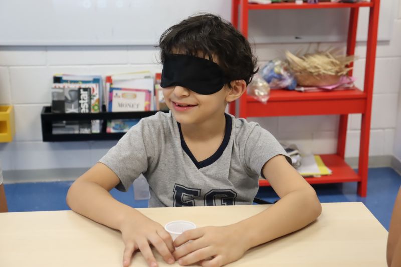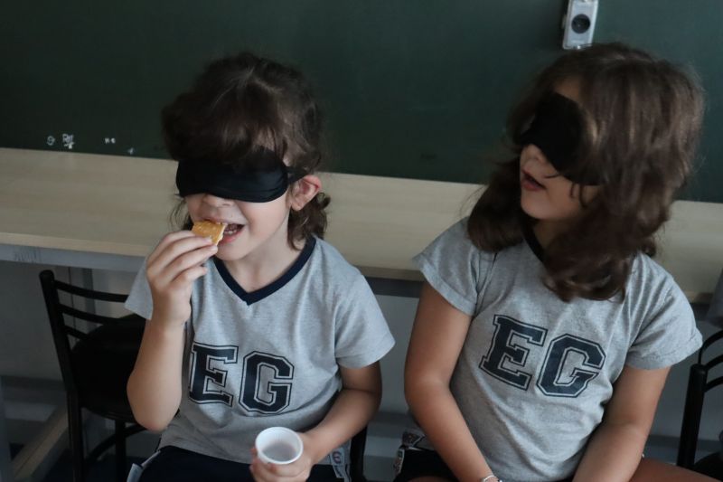 Os alunos do 1º ano EF foram à Sala de Arte para vivenciar uma experiência sobre os cinco sentidos. Sob orientação do Prof. Carlos Sebode, responsável pela Cozinha Experimental e pelos Laboratórios, divertiram-se e aprenderam muito.