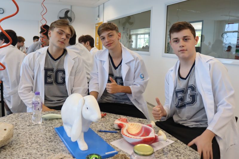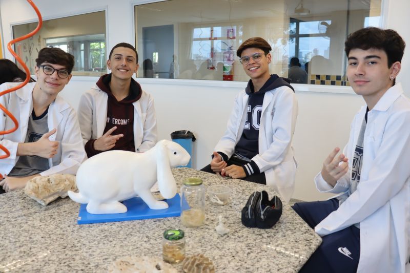 Os estudantes da 2ª série EM foram ao Laboratório, orientados pela Prof.ª Valquíria Nunes, de Biologia, para identificar características gerais, exclusivas e evolutivas dos diferentes Filos do Reino Animalia.