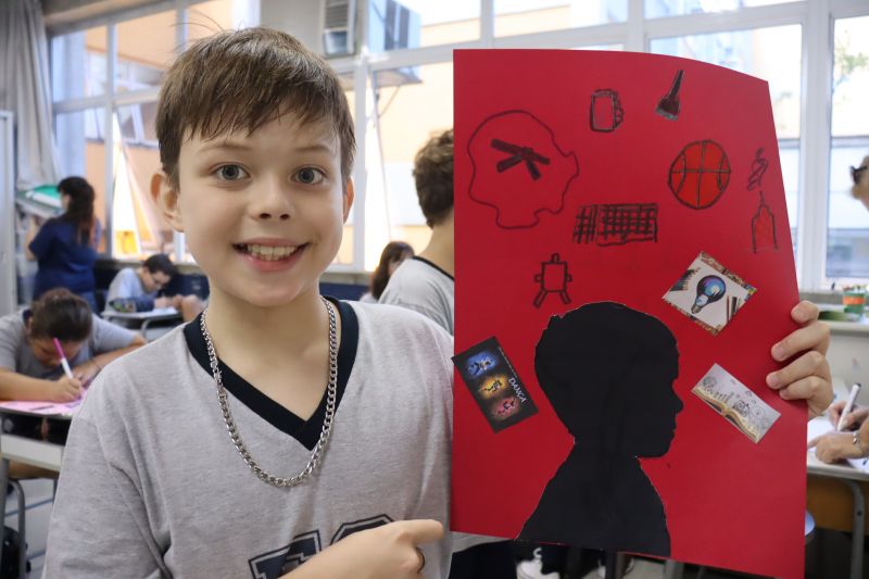 Já nas aulas de Arte, receberam a imagem do próprio perfil e tiveram de fazer uma autoanálise, procurando imagens que os representassem nessas diferentes fases.