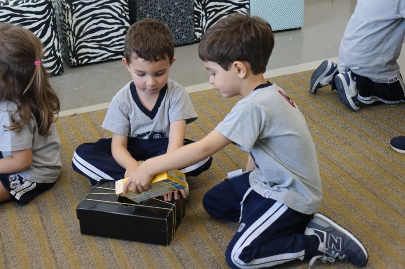 Os alunos do Nível 1 A e B, sob supervisão das Prof.as Luciana e Cida, e orientados pelo Prof. Gideon (responsável pelas aulas de Musicalização), realizaram uma atividade com o objetivo de ampliar o vocabulário por meio de novas canções.
