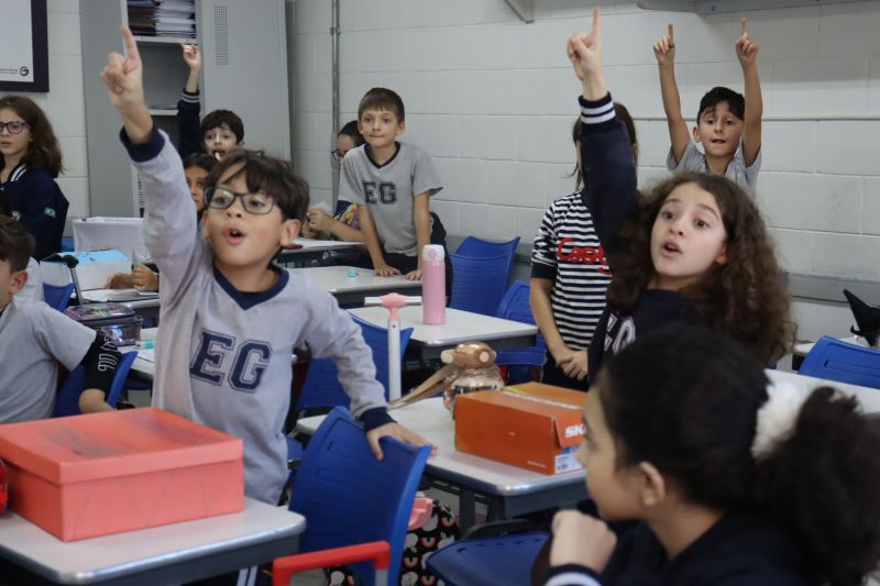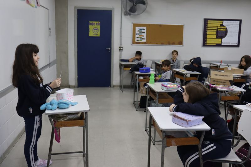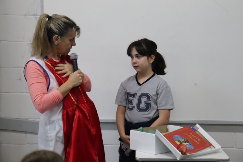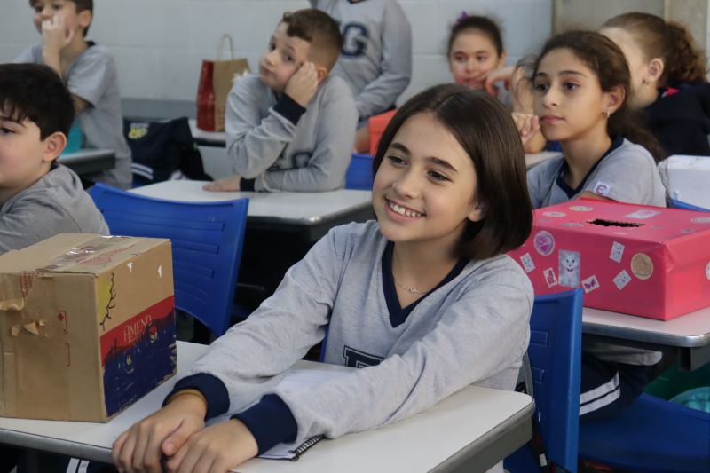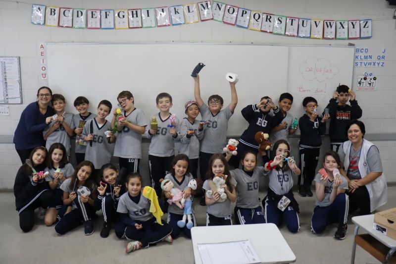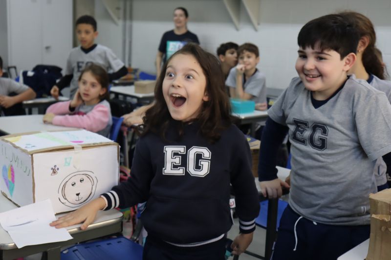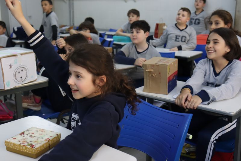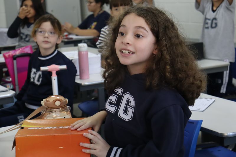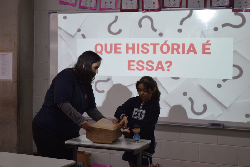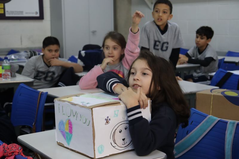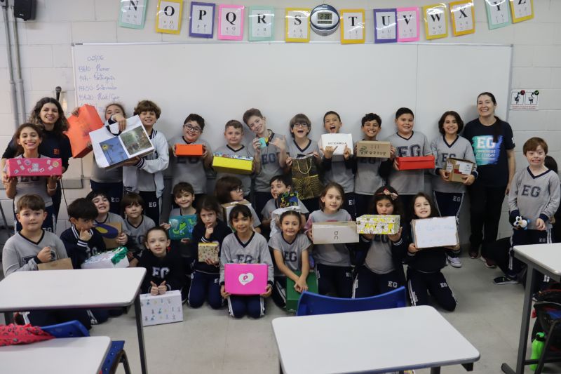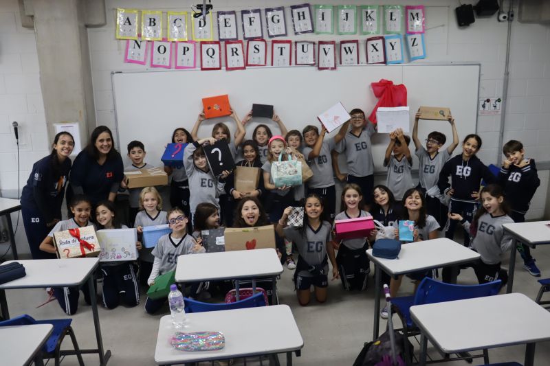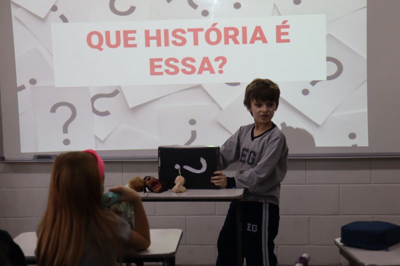Os estudantes do 3º ano EF realizaram a apresentação de uma atividade do Projeto Roda de Leitura, a partir de uma caixa surpresa, sob orientação das Prof.as Aparecida, Gina, Letícia, Paula e Tatiana.