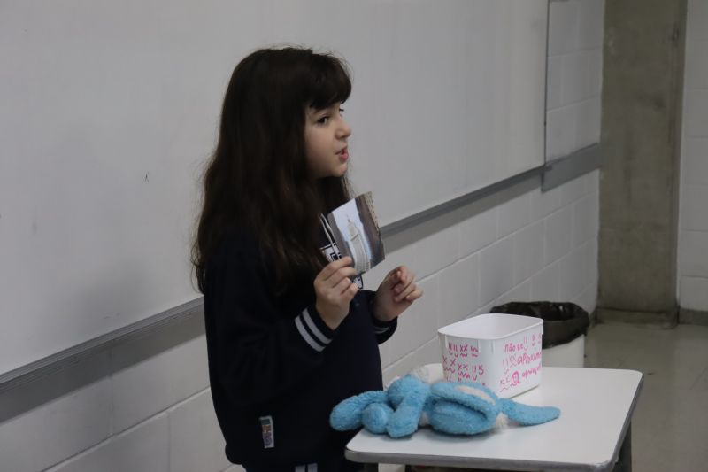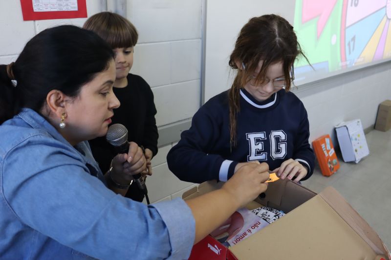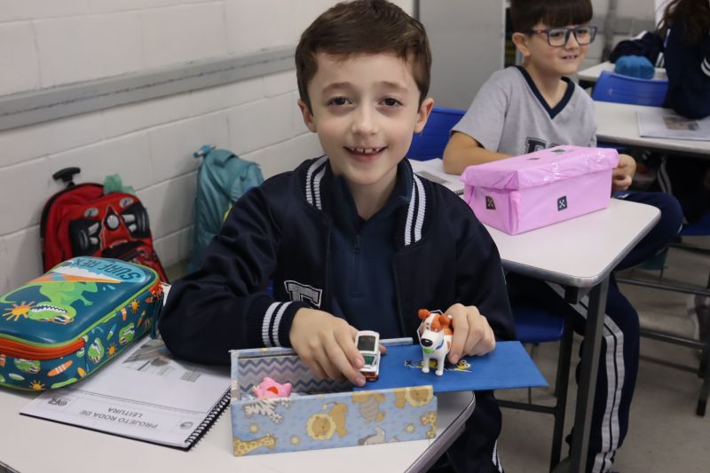 Na apresentação, eles tiravam, de dentro de sua caixa, objetos relacionados ao livro que leram, para que seus colegas o identificassem, com o objetivo de estabelecer expectativas sobre a obra lida e compartilhar experiências prazerosas de leitura.