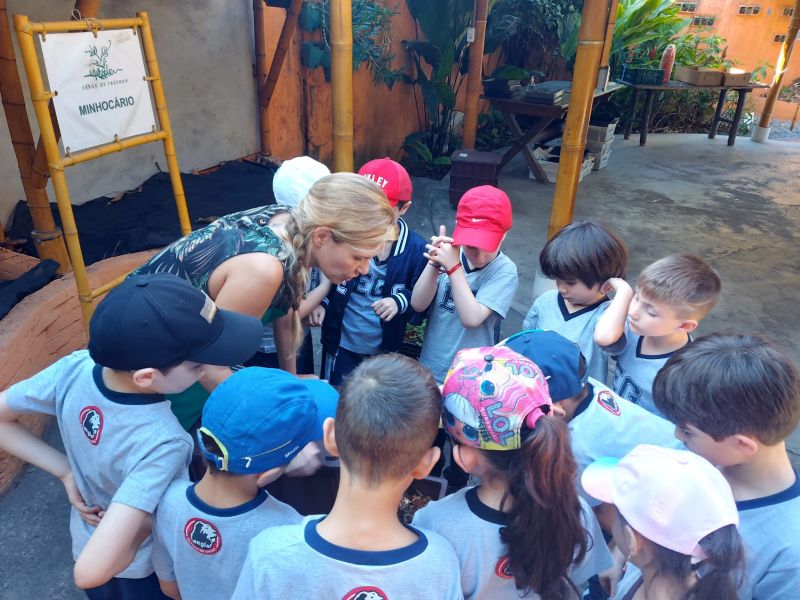 Por fim, visitaram e exploraram o minhocário da fazenda, onde se divertiram muito!