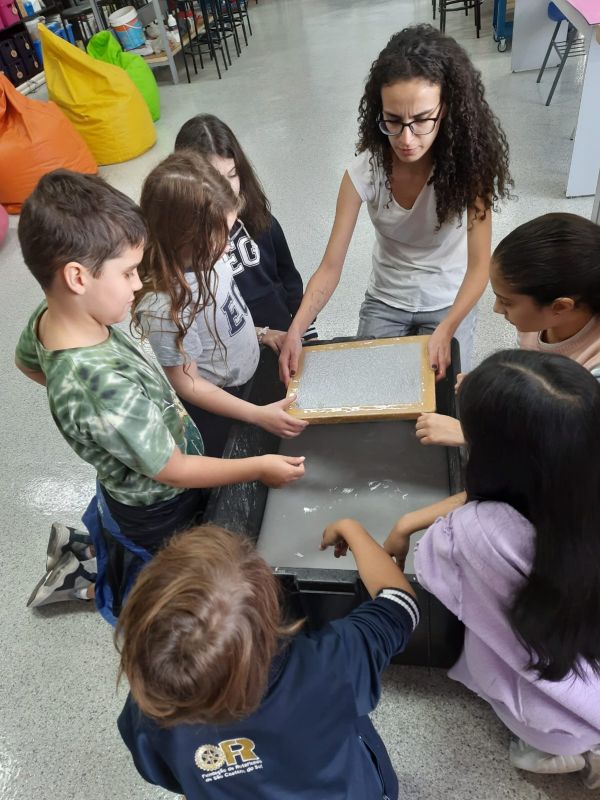 No Espaço Maker, a criançada aprendeu sobre o processo e a importância da reciclagem, conheceu um pouco mais sobre as cores e a diversas formas de combiná-las, a partir do círculo cromático.