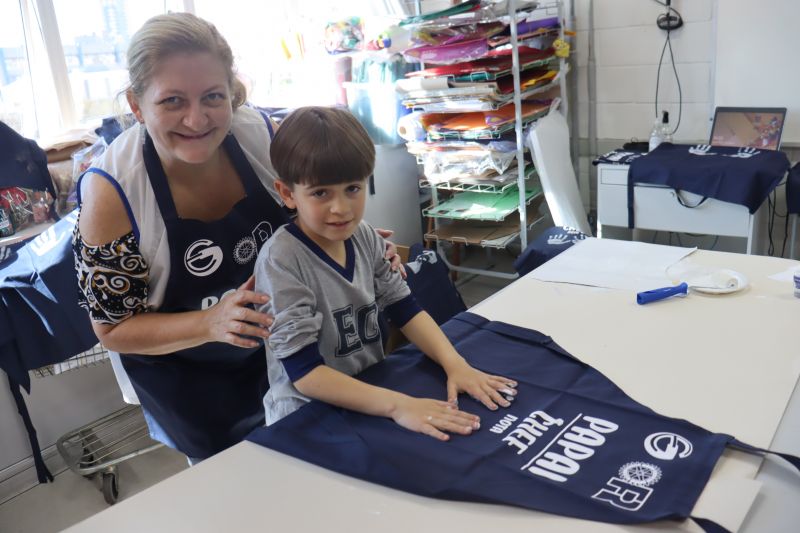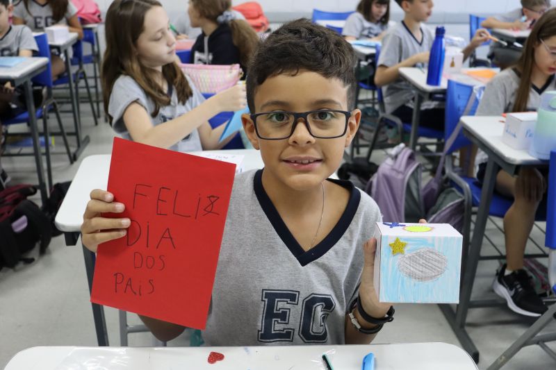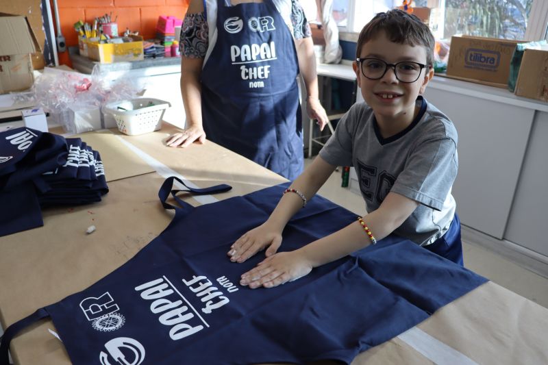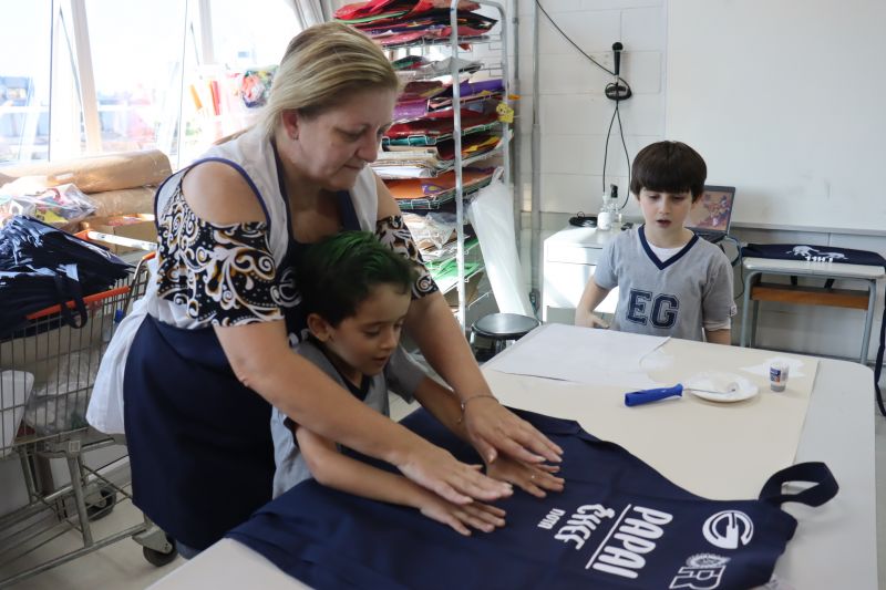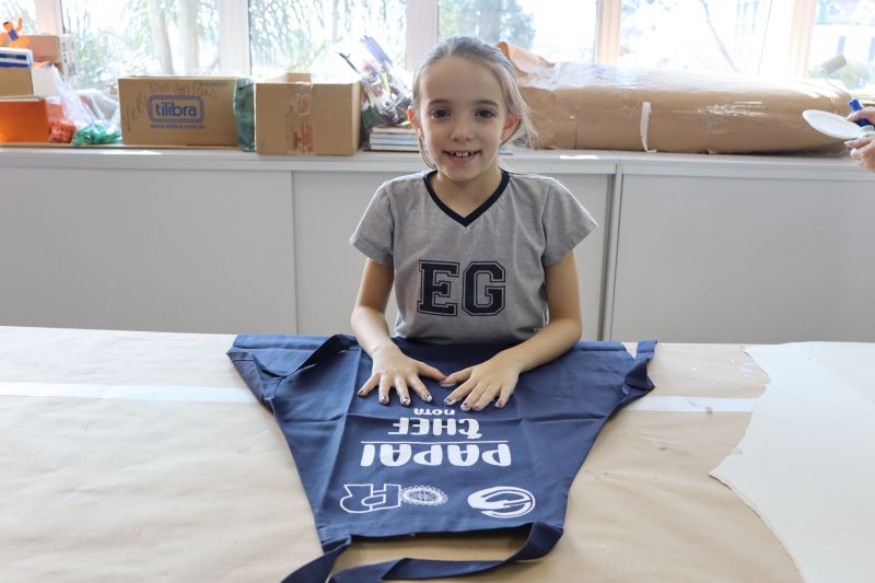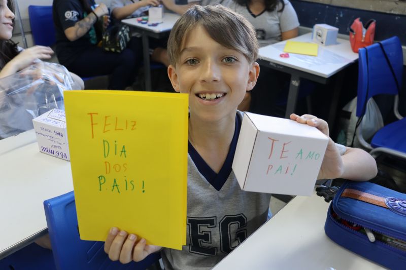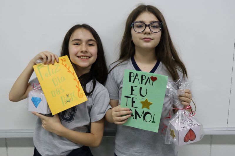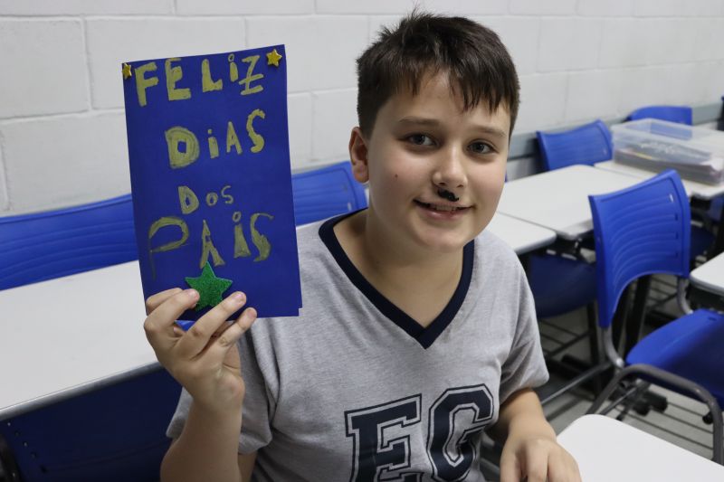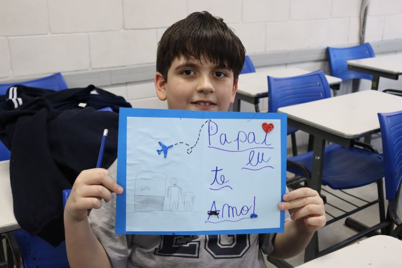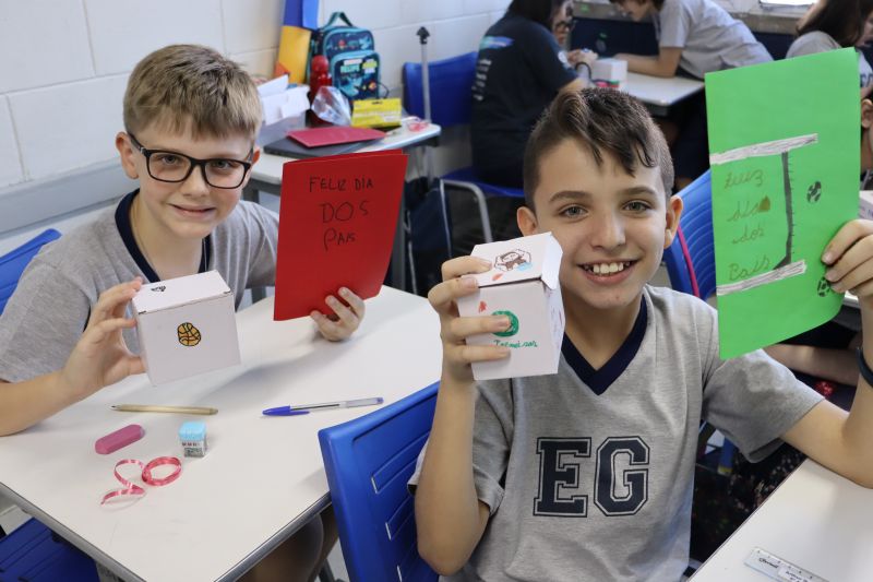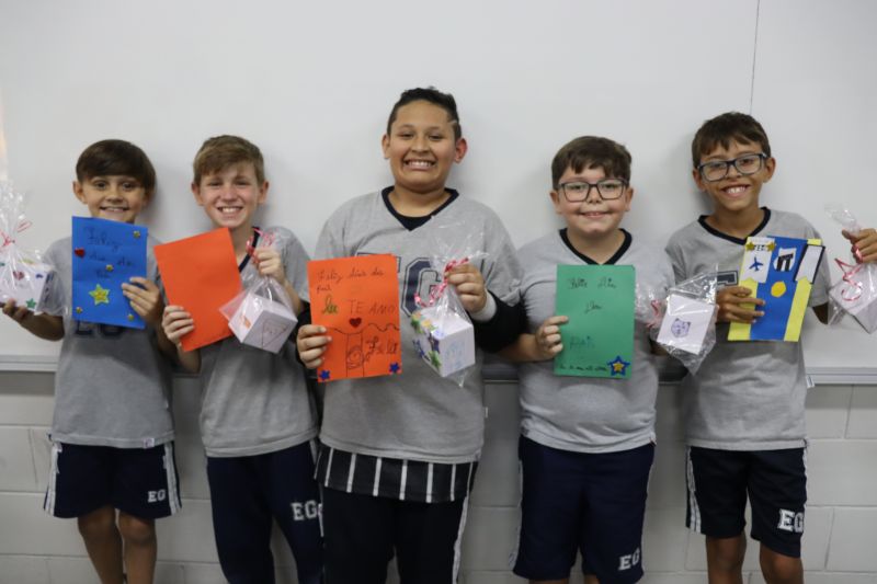 Os estudantes do NI ao 3º ano customizaram um avental, elaborando uma peça linda e única. Os alunos do 4º ao 6º ano receberam uma caneca sobre o tema e fizeram um cartão para seus pais, com muito amor.