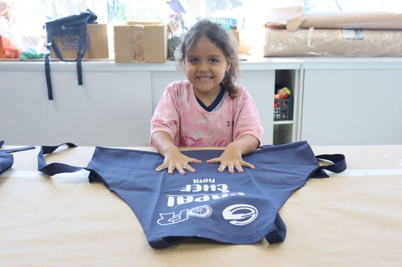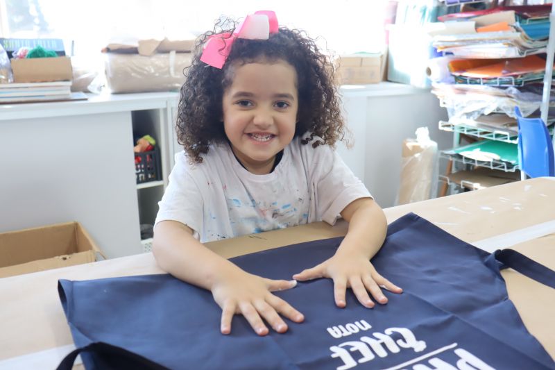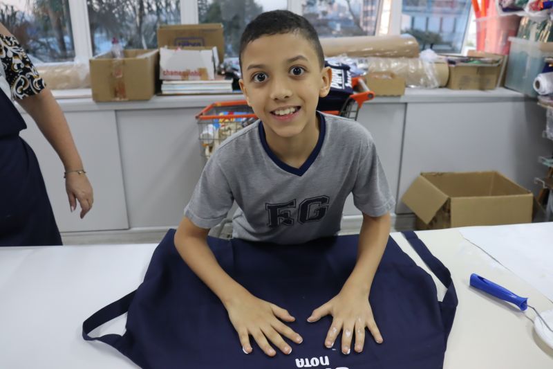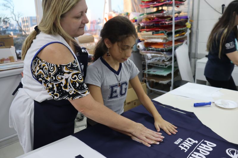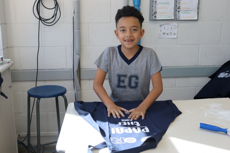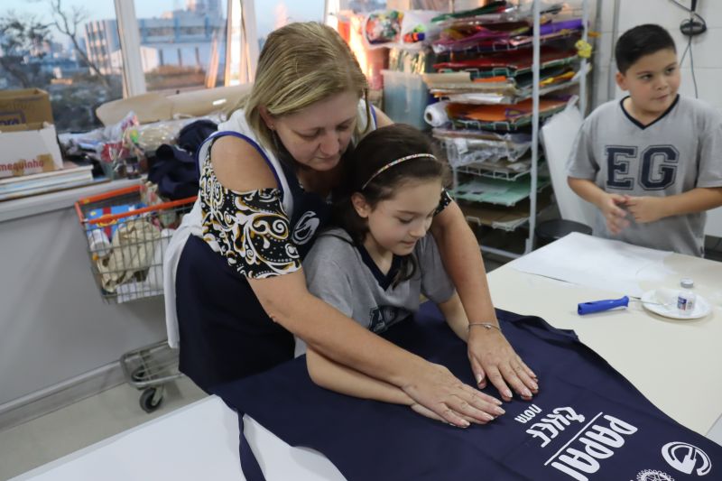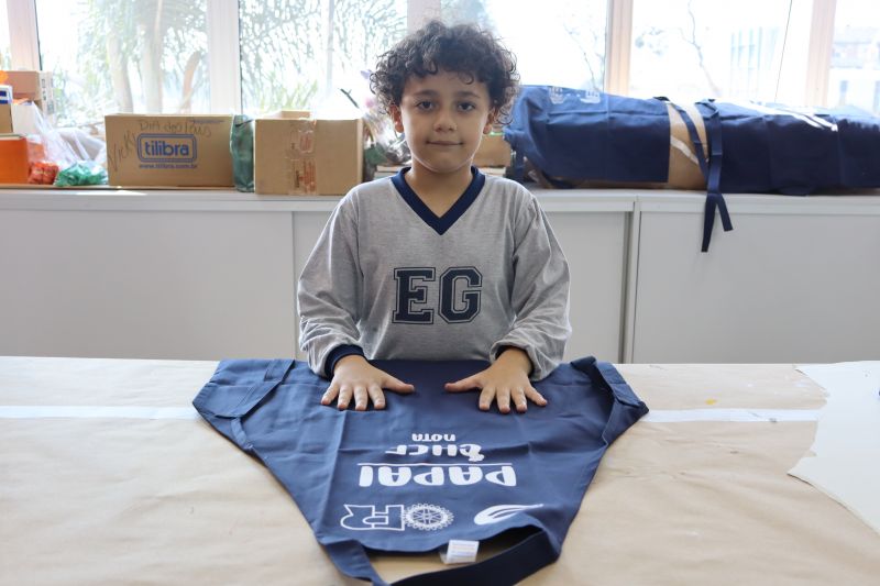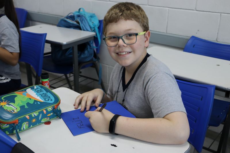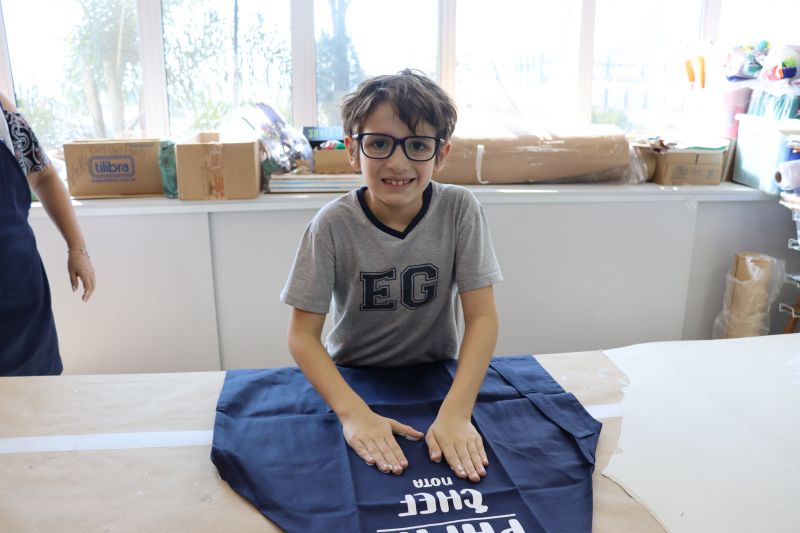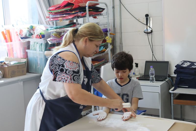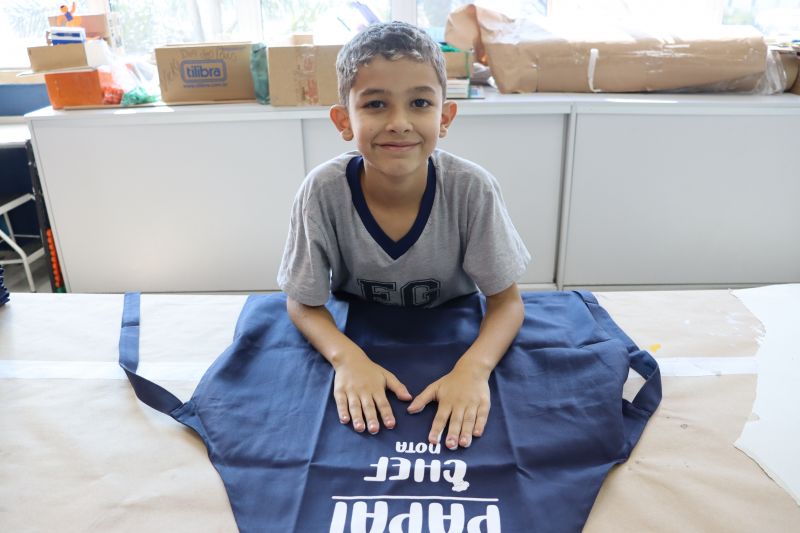 Os estudantes do NI ao 3º ano customizaram um avental, elaborando uma peça linda e única. Os alunos do 4º ao 6º ano receberam uma caneca sobre o tema e fizeram um cartão para seus pais, com muito amor.