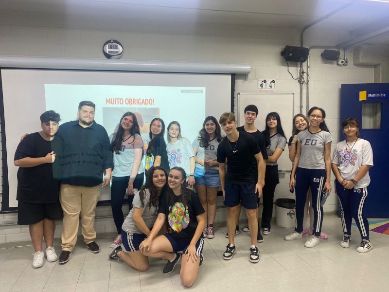 No mês de setembro, aconteceu a terceira palestra do projeto Compartilhando Sucessos. Dessa vez, os estudantes do 9º ano EF e do Ensino Médio receberam o estudante de Medicina Bruno Fiorio Pinheiro, que está cursando o 4° ano (8° semestre) da Faculdade de Medicina de São Caetano do Sul e estudou no EG por 13 anos.