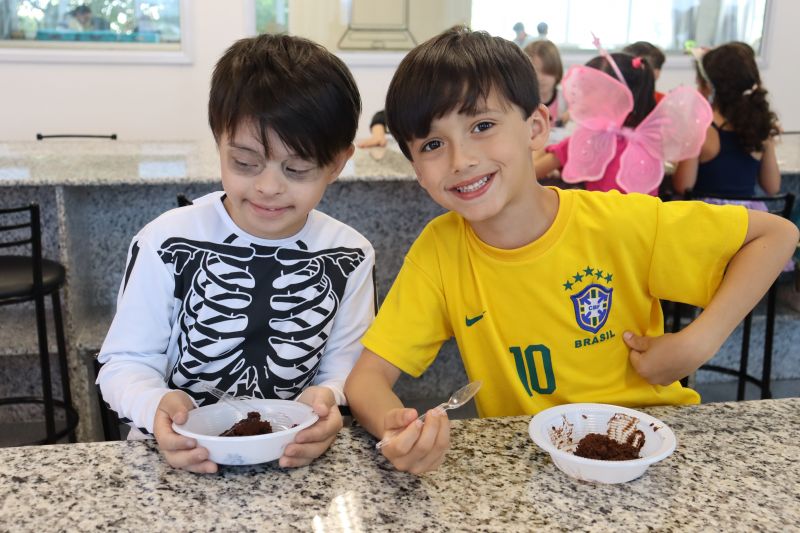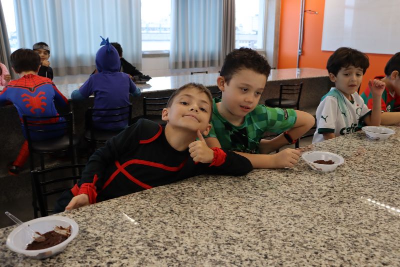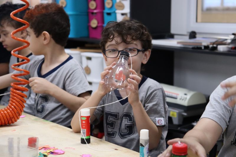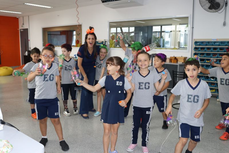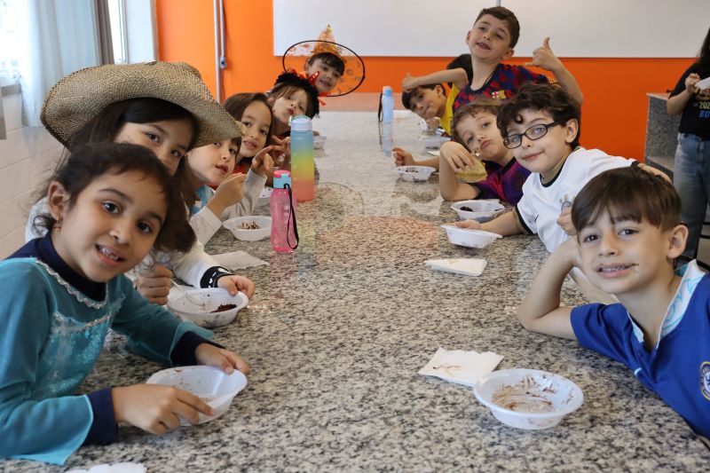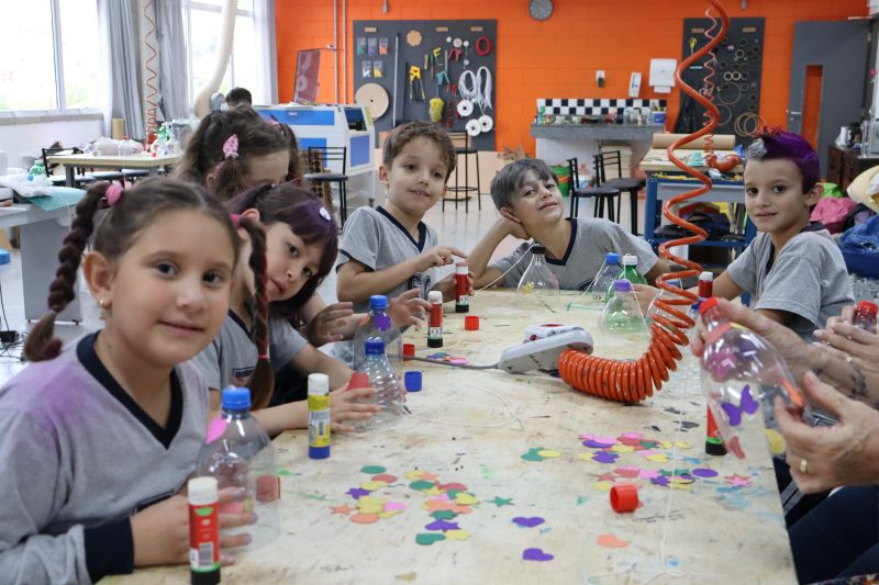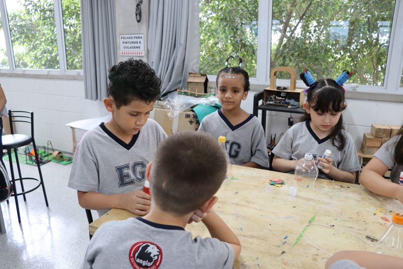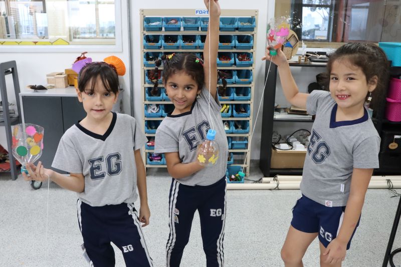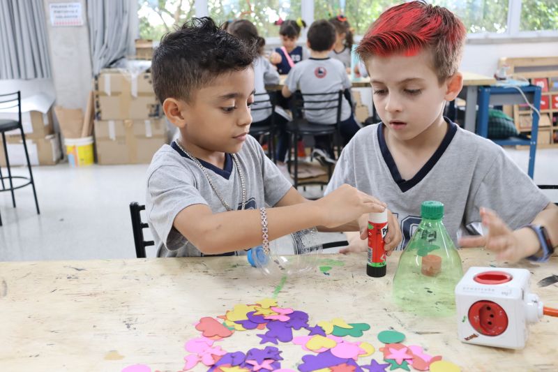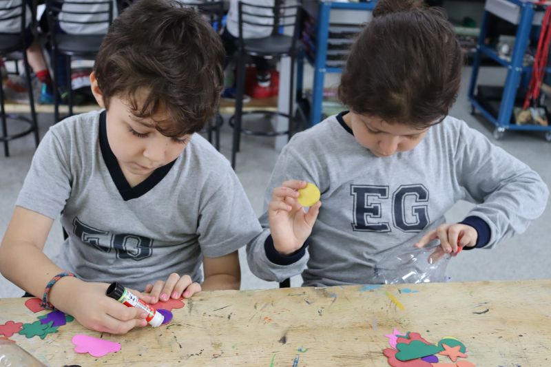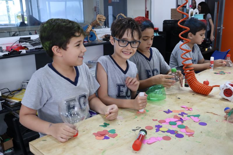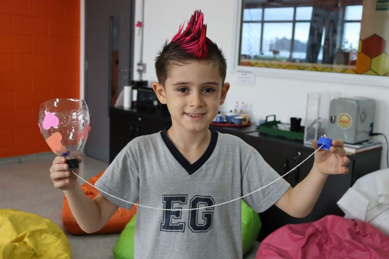 Os estudantes do 1º ano do Ensino Fundamental fizeram atividades diferentes em comemoração ao Dia das Crianças. Primeiramente foram ao Espaço Maker e, sob orientação da Virginia (responsável pelo espaço) confeccionaram um bilboquê e se divertiram com o brinquedo.