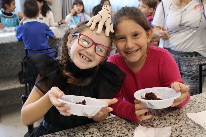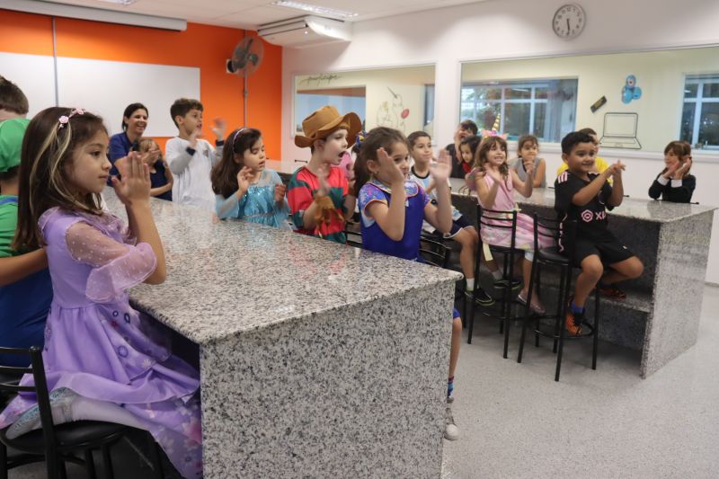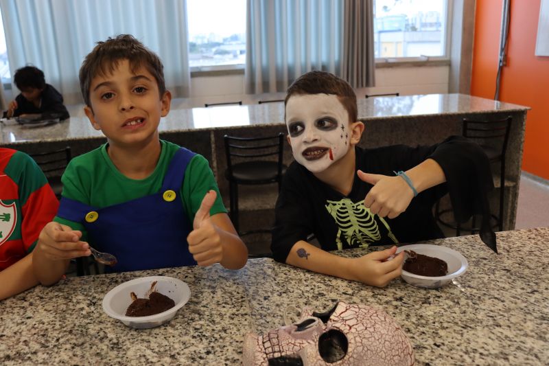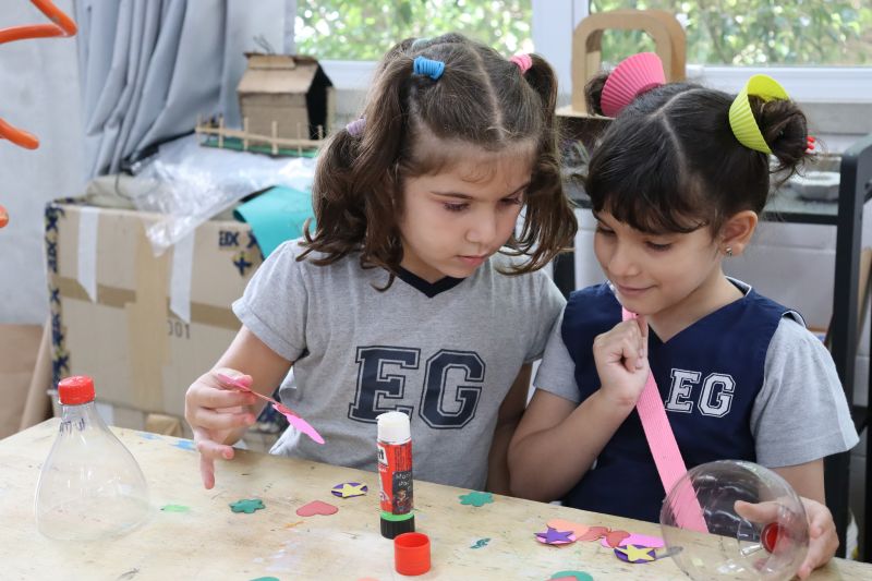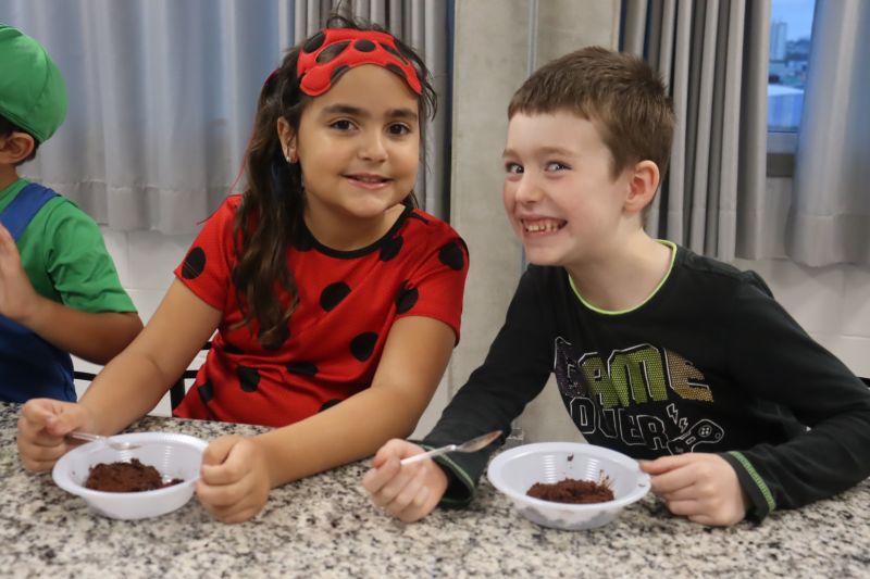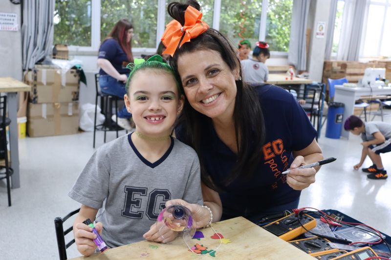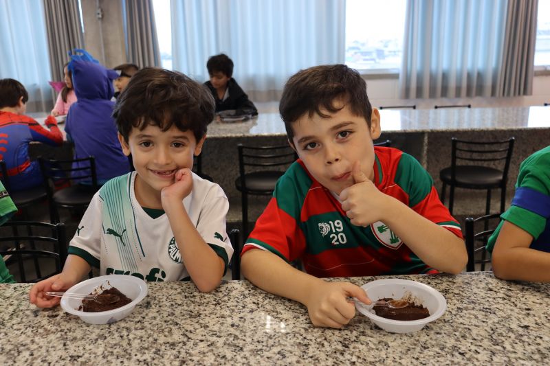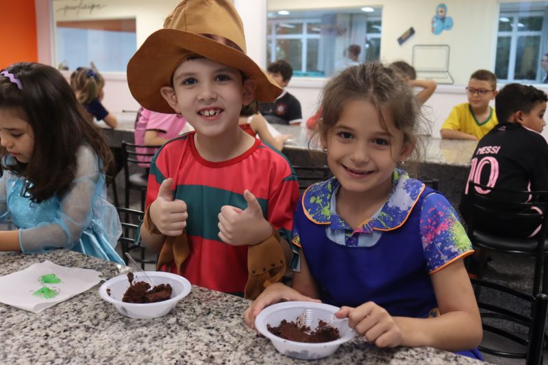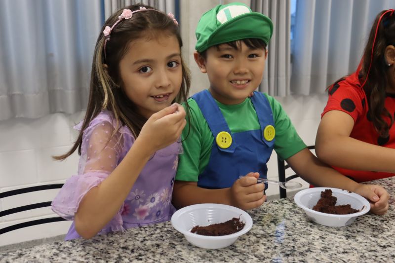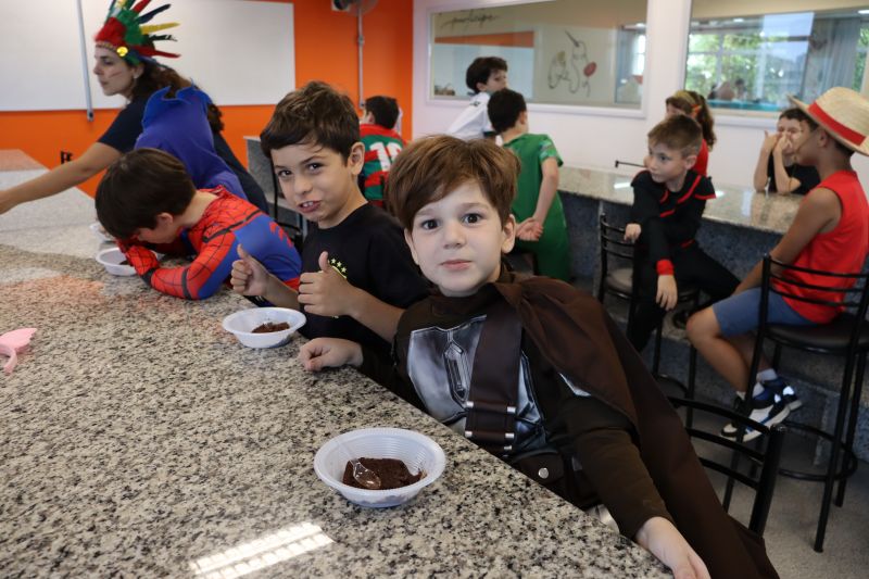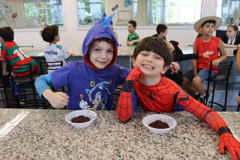 Os estudantes do 1º ano do Ensino Fundamental fizeram atividades diferentes em comemoração ao Dia das Crianças. Primeiramente foram ao Espaço Maker e, sob orientação da Virginia (responsável pelo espaço) confeccionaram um bilboquê e se divertiram com o brinquedo.