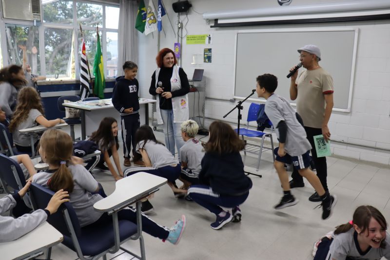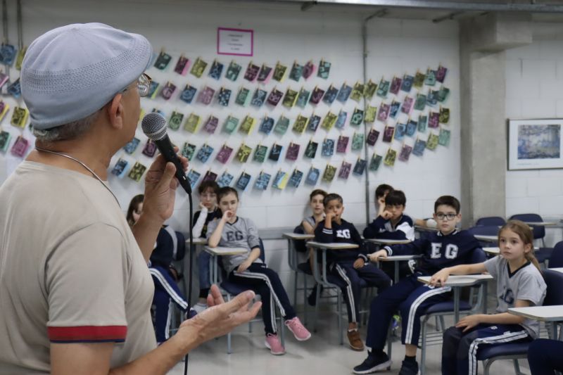 Finalizando a atividade, o 4º ano recebeu a visita de um cordelista, cantor e poeta: Costa Senna. Esse encontro permitiu que as crianças conhecessem a história de vida do profissional e compreendessem a importância do cordel na sociedade brasileira. A presença do cordelista foi repleta de atividades interativas e brincadeiras que uniram diversão e aprendizado, fazendo com que os estudantes vivenciassem um momento especial e memorável.