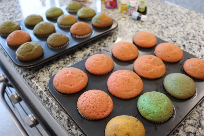 Eles foram à Cozinha Experimental e observaram atentamente o Professor Carlos (responsável pelo espaço) preparar uma receita de cupcake colorido.