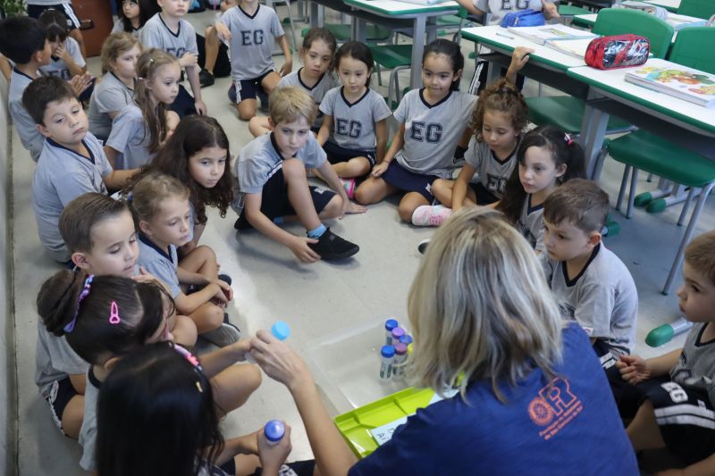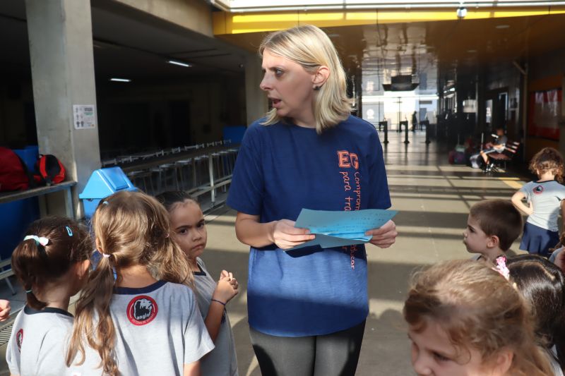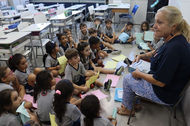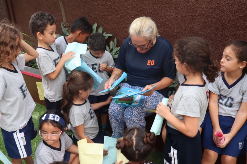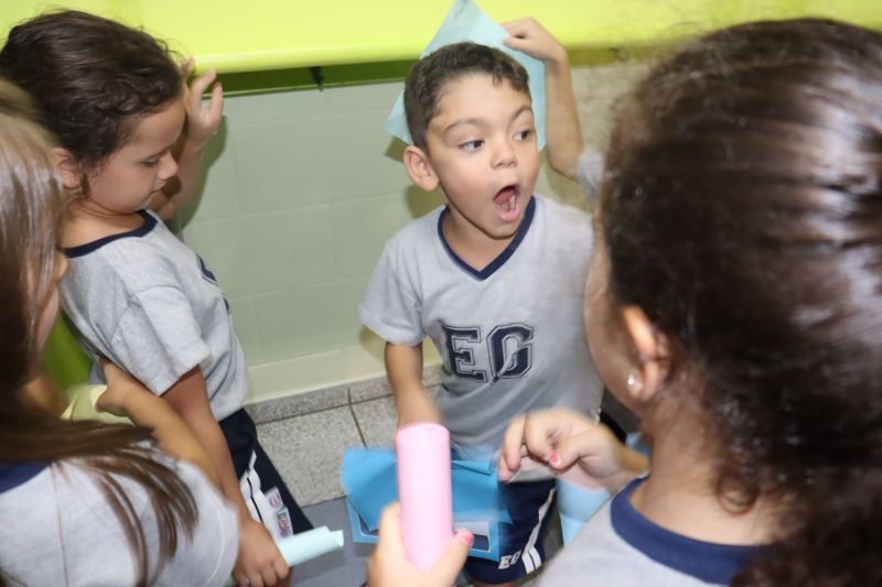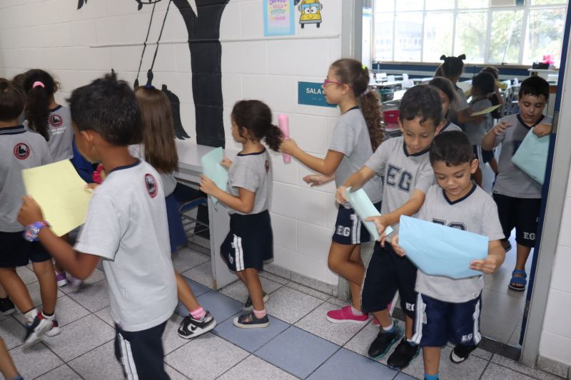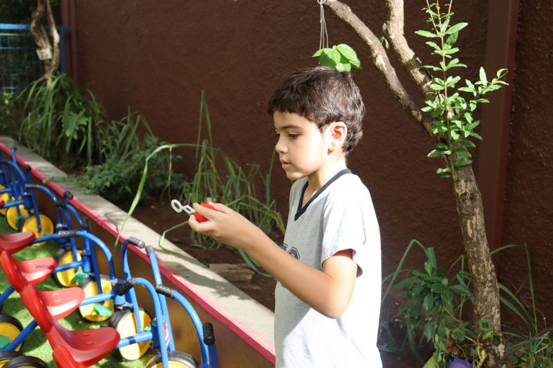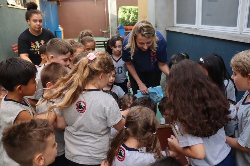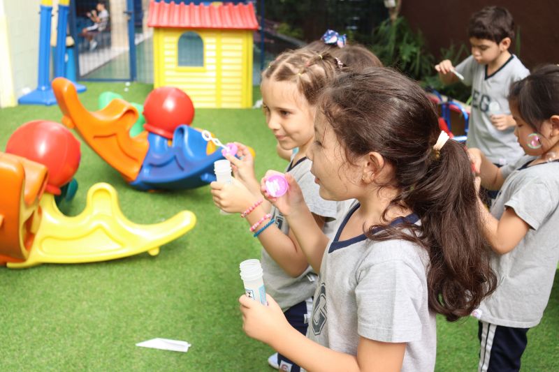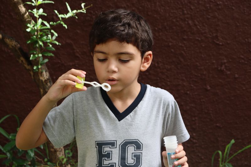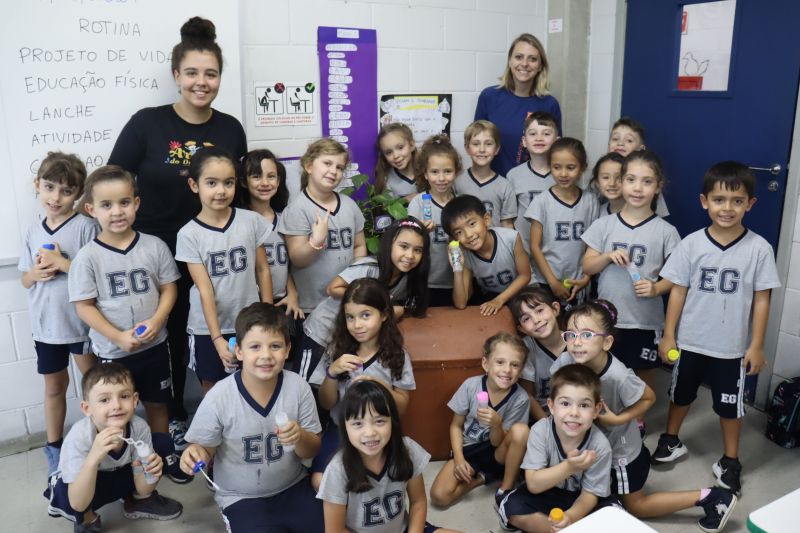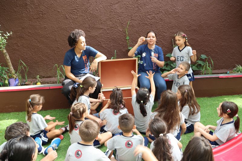 No final da atividade, os alunos receberam tubos para fazer bolhas de sabão para brincar.